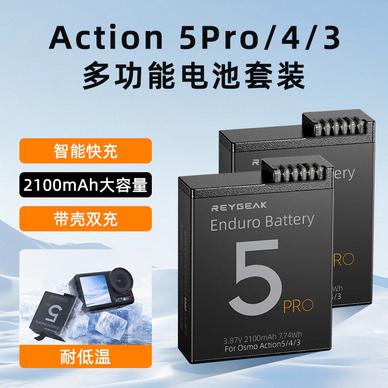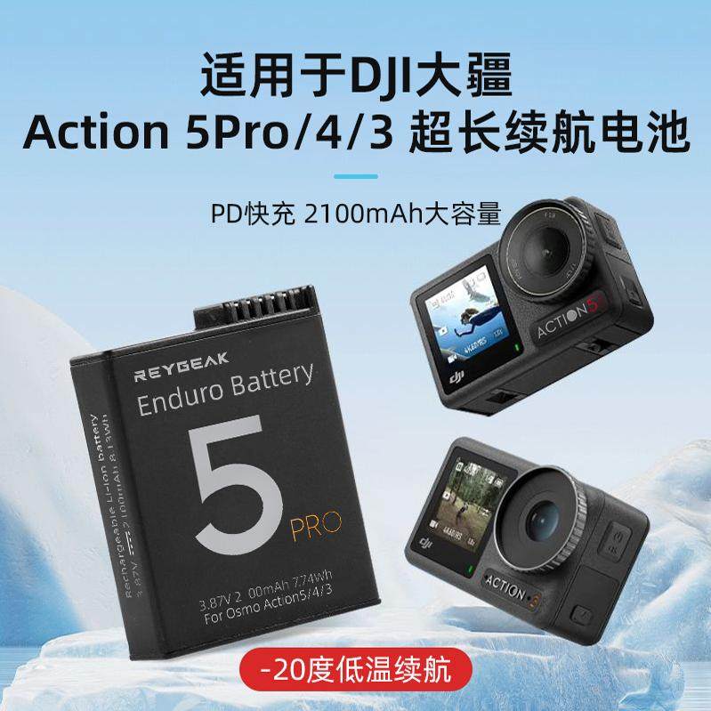 REYGEAK适用DJI大疆Action6/5pro 4/3osmo360电池快充耐低温长续航充电盒运动相机action6配件电池充电收纳盒