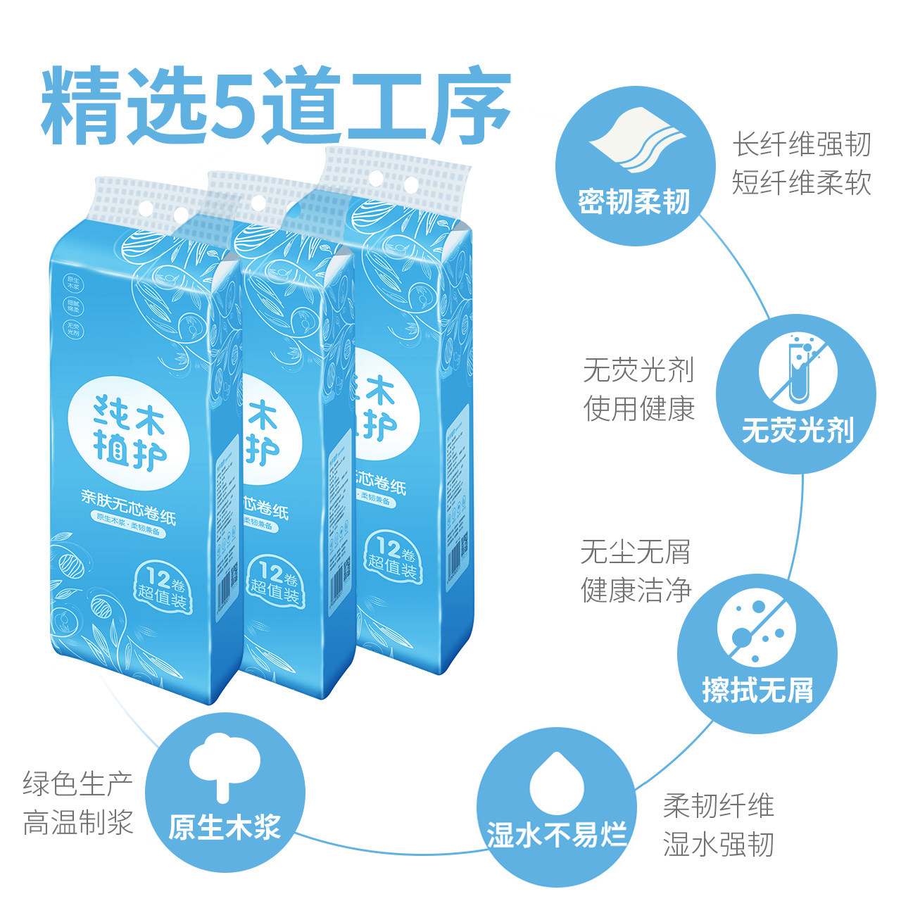 植护无芯卷纸卫生纸家用大卷实惠装宿舍厕所卷筒纸手纸整箱批纸巾