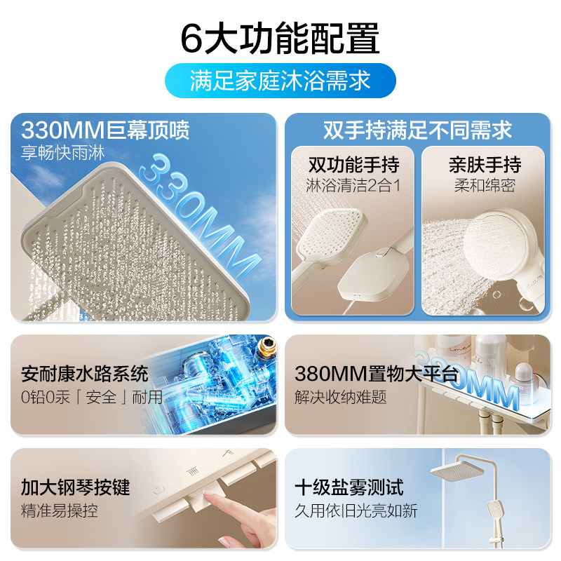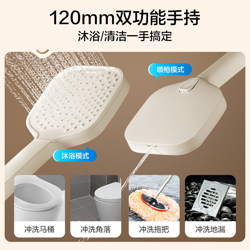 恒洁钢琴按键平台置物除垢喷枪儿童淋浴花洒套装枪灰奶白色Y57