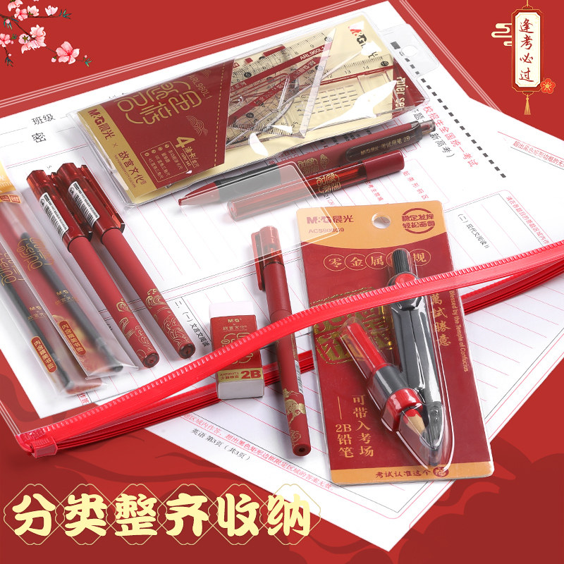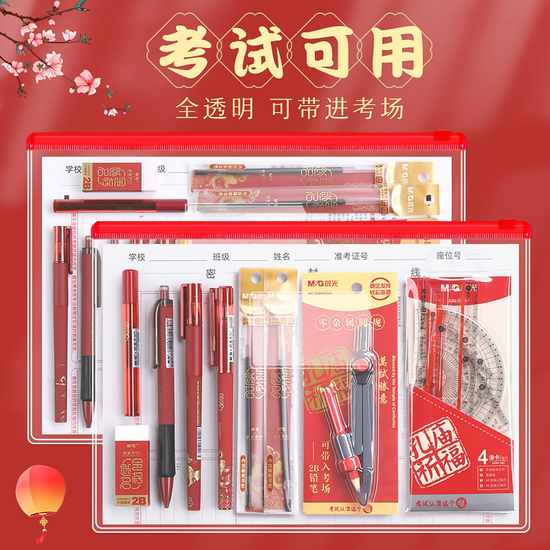 晨光考试专用袋子透明文件袋拉链式中考高考笔袋a4文件收纳袋学生文具袋加厚试卷袋防水a5塑料透明拉边资料袋