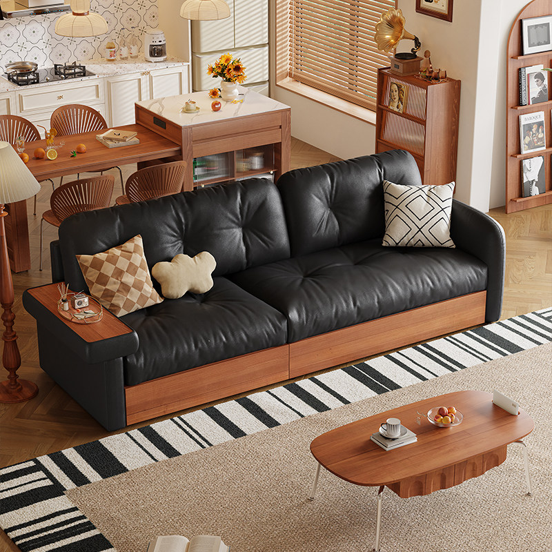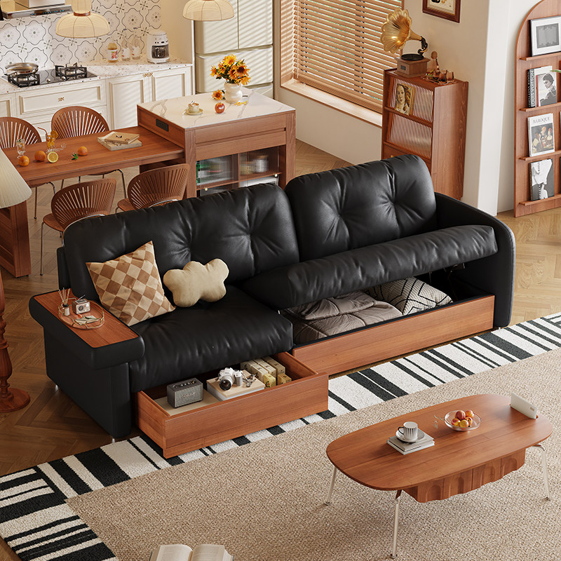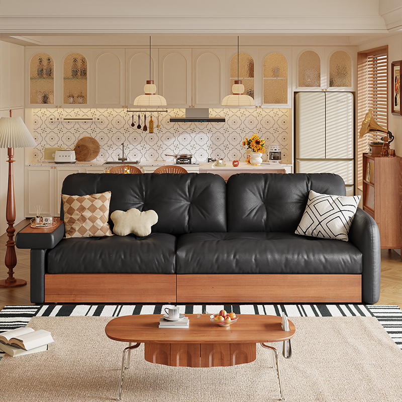 法式复古直排可储物云朵沙发小户型中古风客厅皮艺沙发床美式家具