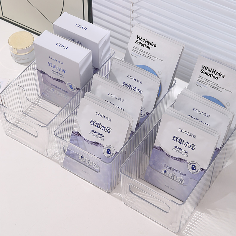 面膜收纳盒亚克力梳妆台透明分格盒桌面化妆品大容量护肤品置物架