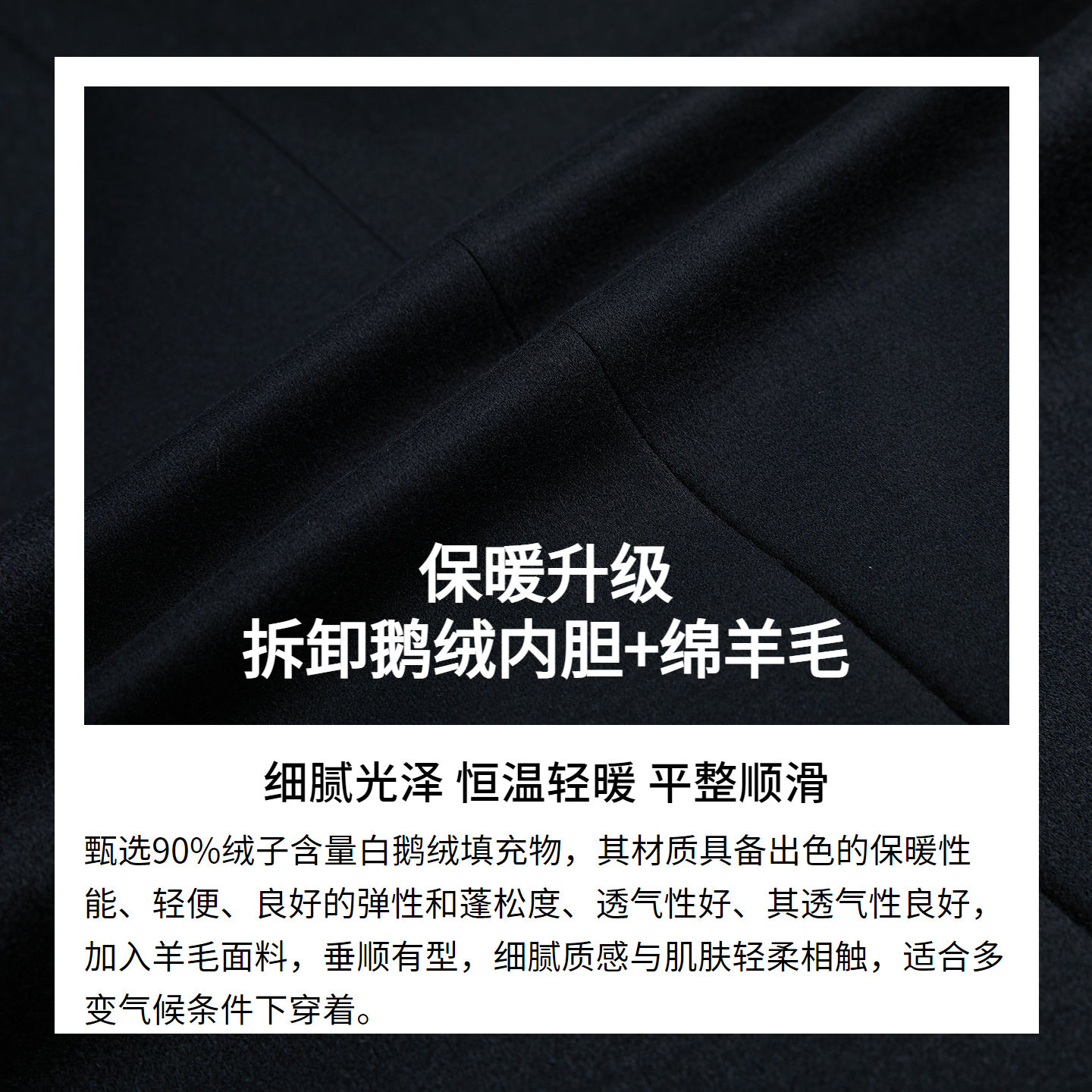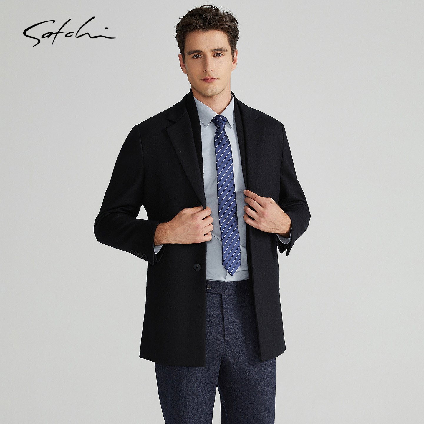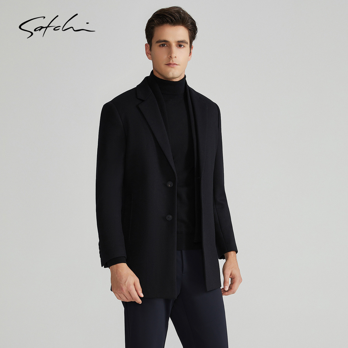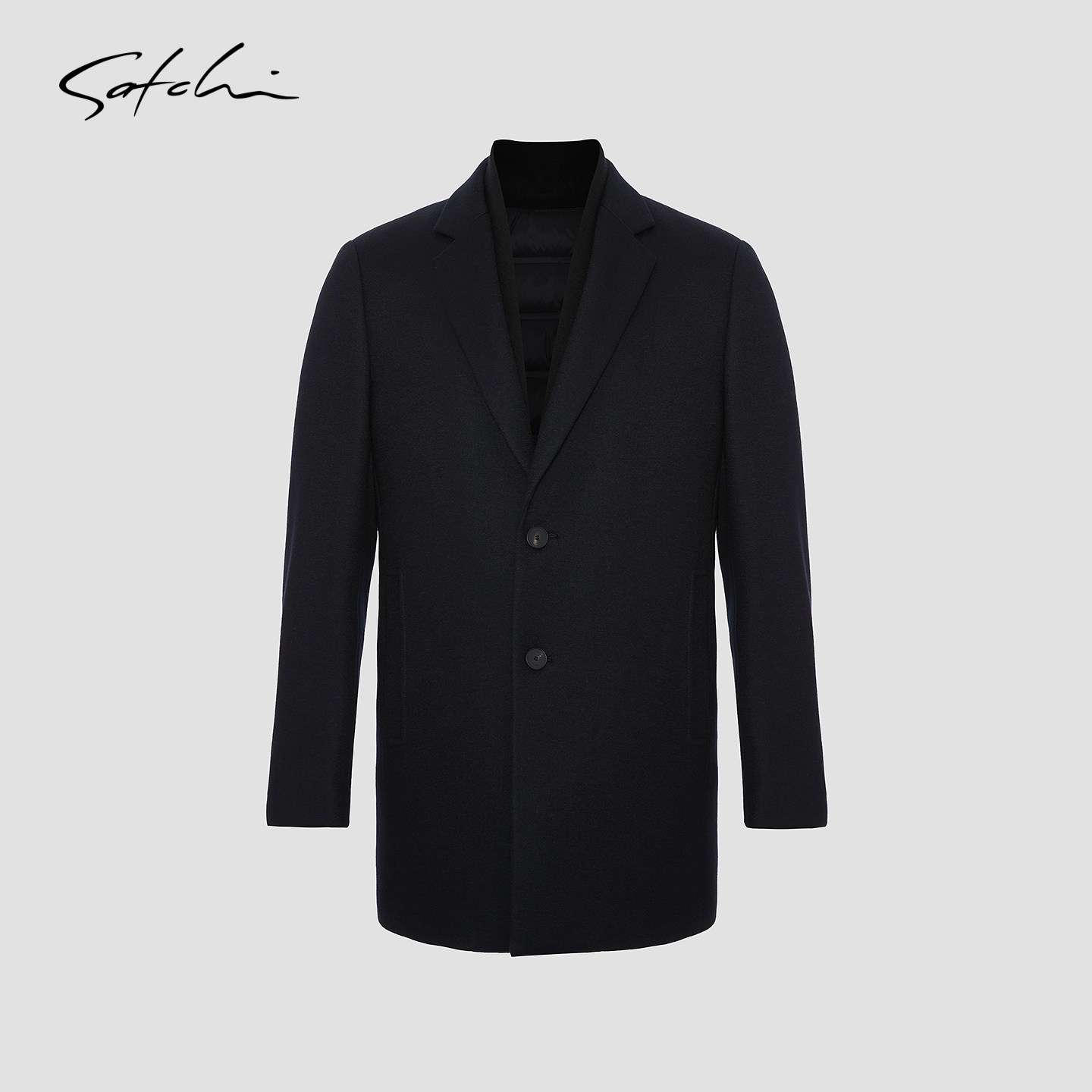 [可拆卸鹅绒内胆]SATCHI沙驰男装男士毛呢大衣冬季中长款羊毛外套