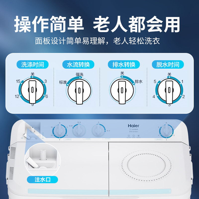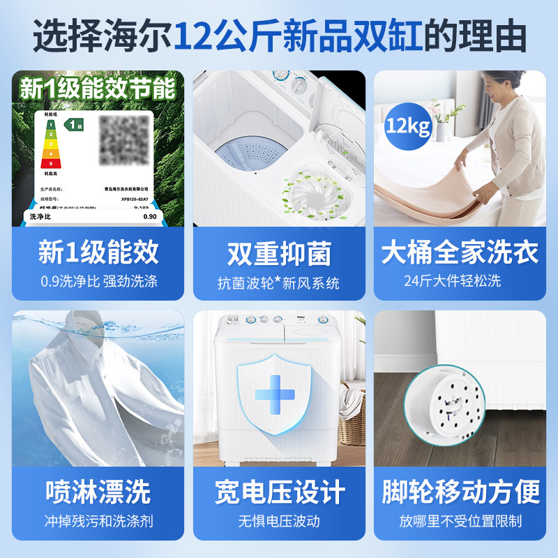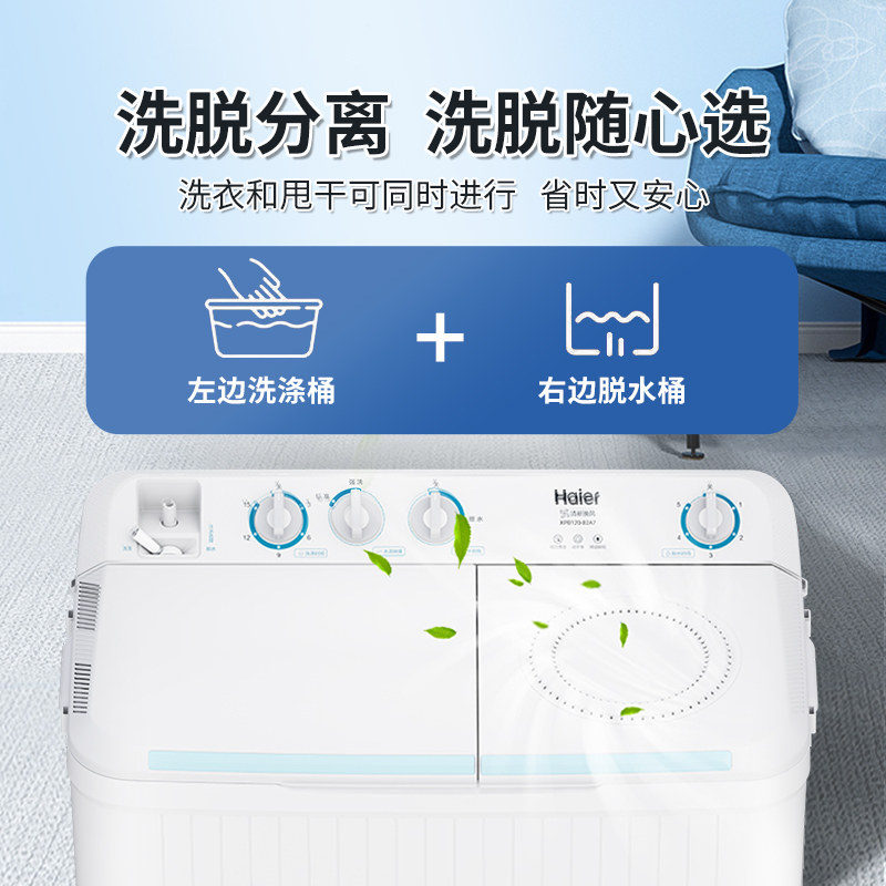 新一级海尔半自动洗衣机12公斤家用双缸双桶强力去污高效节能82A7