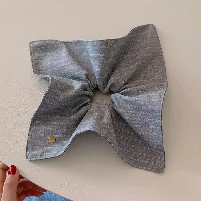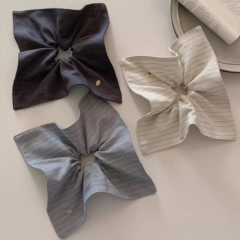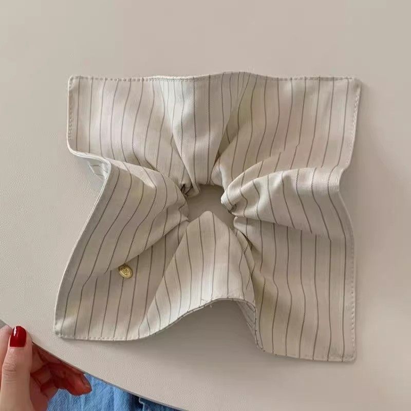 韩系高级感布艺条纹方巾大肠发圈女超大低马尾扎头发头绳气质头饰