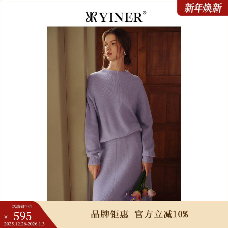 【裸感羊绒】YINER音儿女装冬季绵羊毛开衩针织衫套头