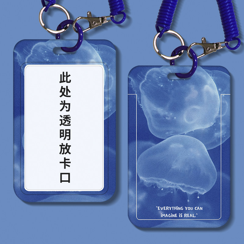 海洋蓝色水母公交卡学生饭卡校园门禁卡证件卡套工牌钥匙链一体