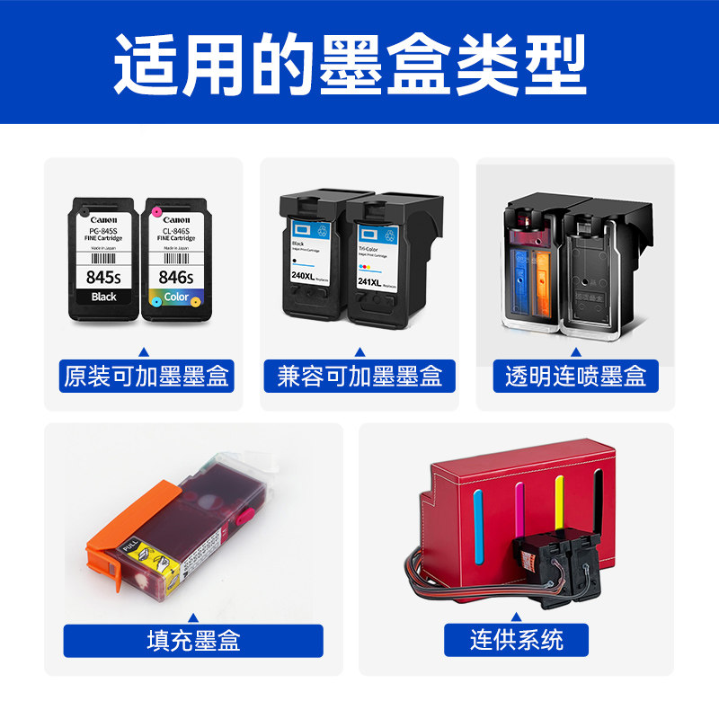 适用佳能TS3380 TS3480喷墨打印机墨水845 846 840 841喷墨连供墨盒专用黑彩色墨水TS3180四色填充通用墨汁