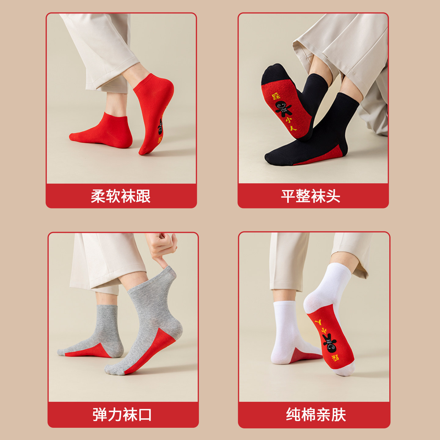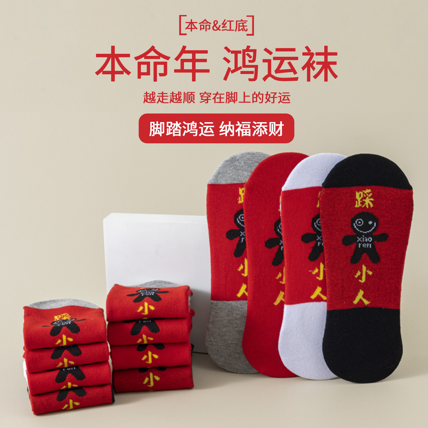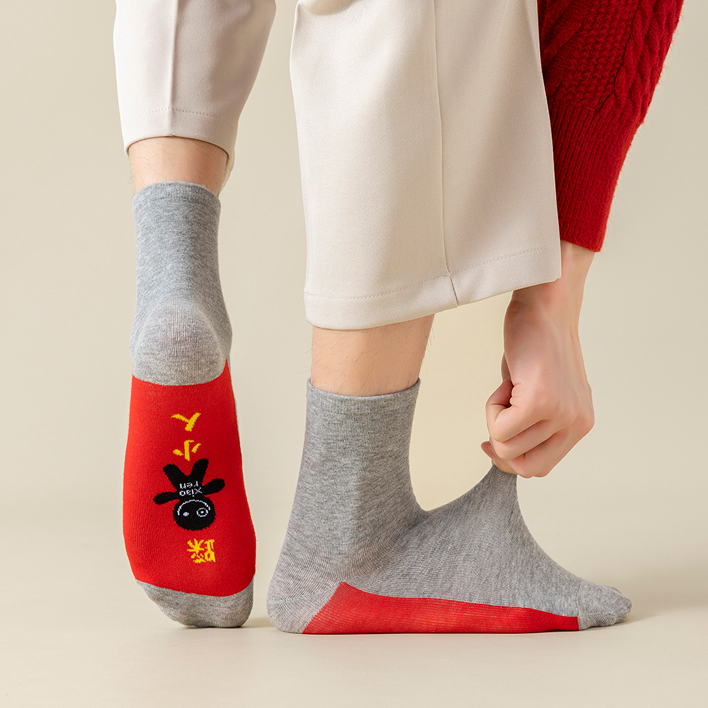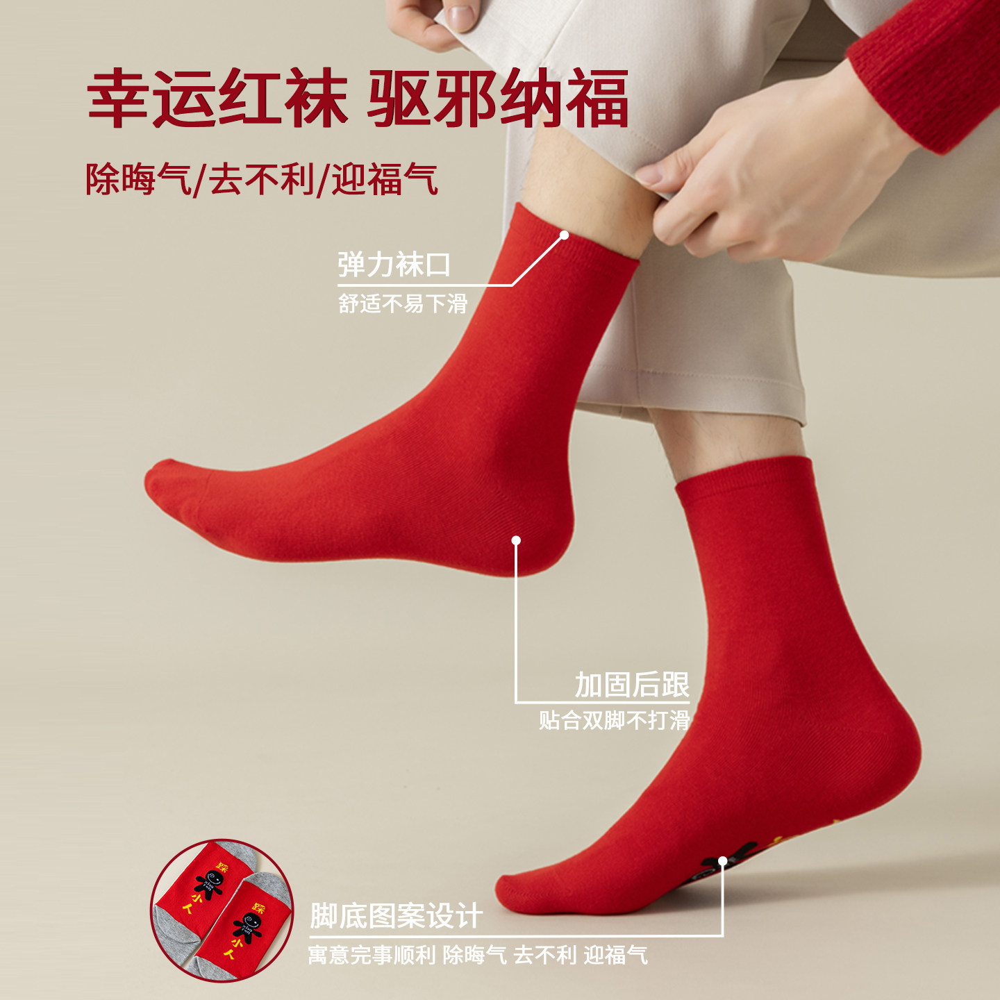 本命年属马年小人图案男士中筒袜子大红色女纯棉短袜秋冬情侣礼物
