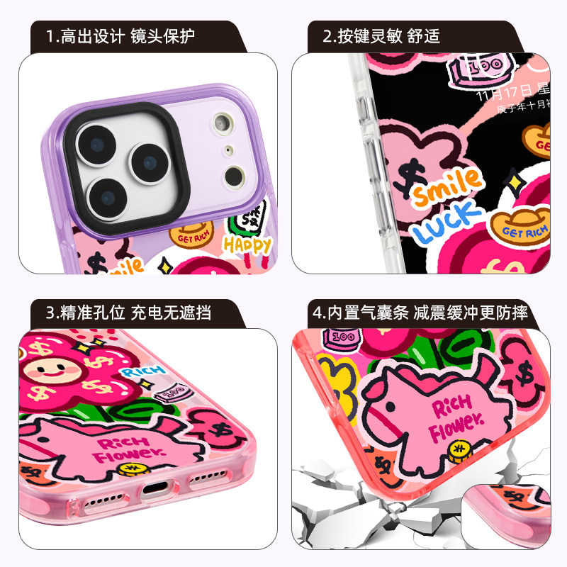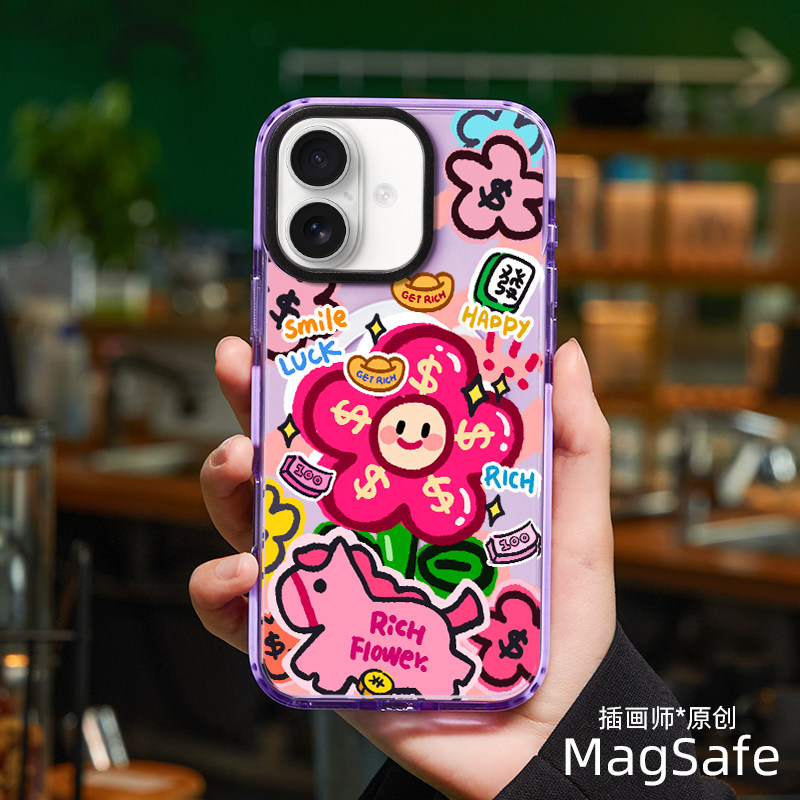 原创马上有钱花红色iPhone17ProMax手机壳马年本命16plus适用苹果15磁吸14防摔13过新年12透明带挂绳春节air