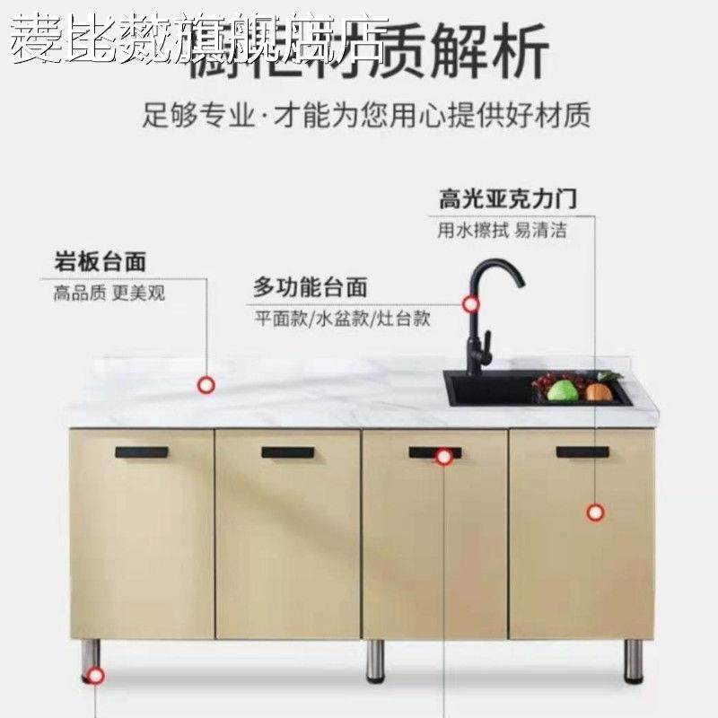 麦比梵厨房整体橱柜客厅一体式收纳柜简约水槽柜一体餐柜置物柜茶水柜床笠拉车