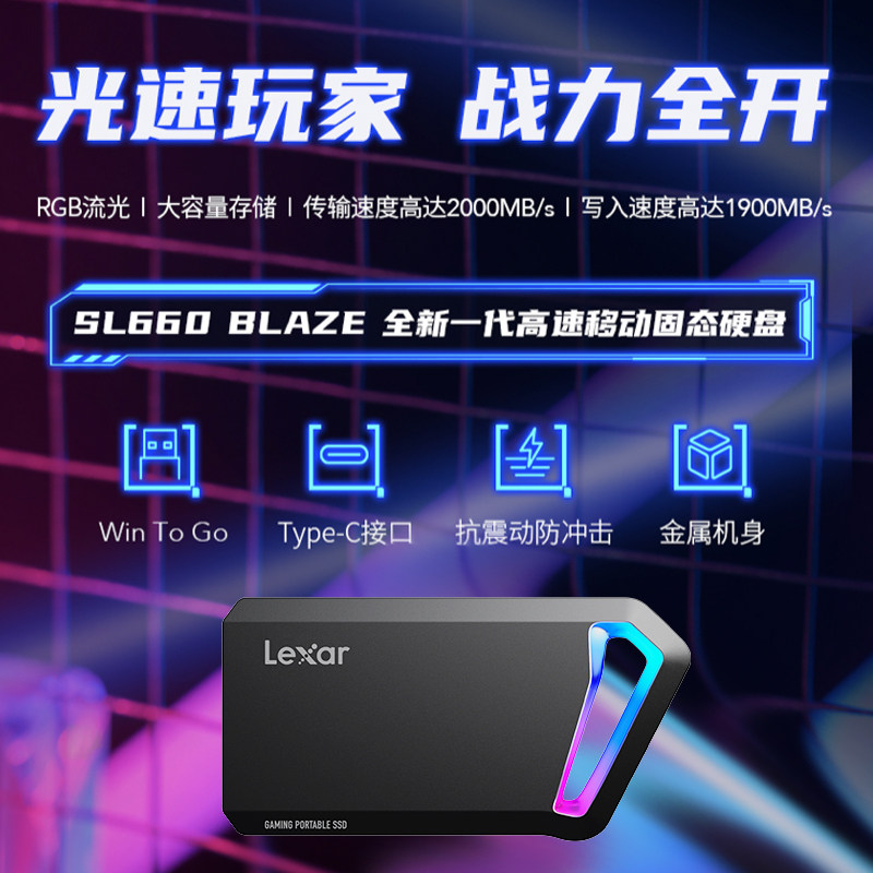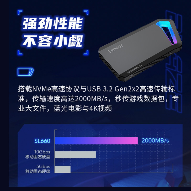 雷克沙移动固态硬盘高速手机电脑移动硬盘读速高达2000MB/秒SL660