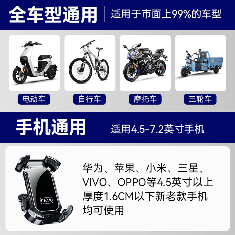 新款电动车手机支架车载骑行导航摩托车防震手机架自行车