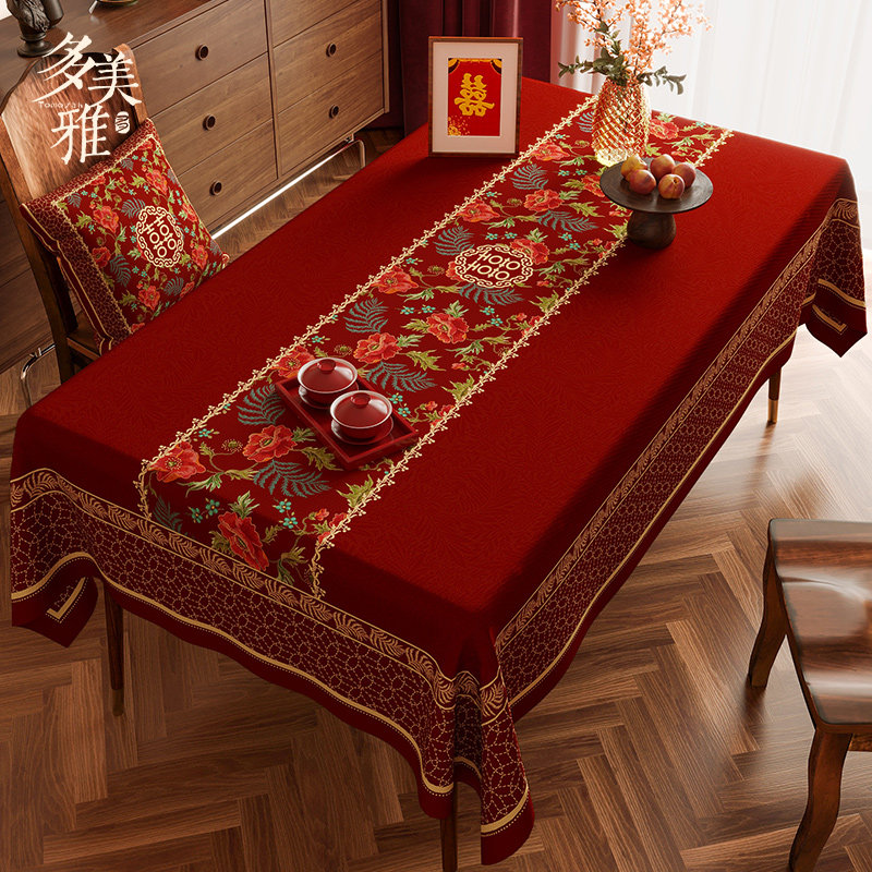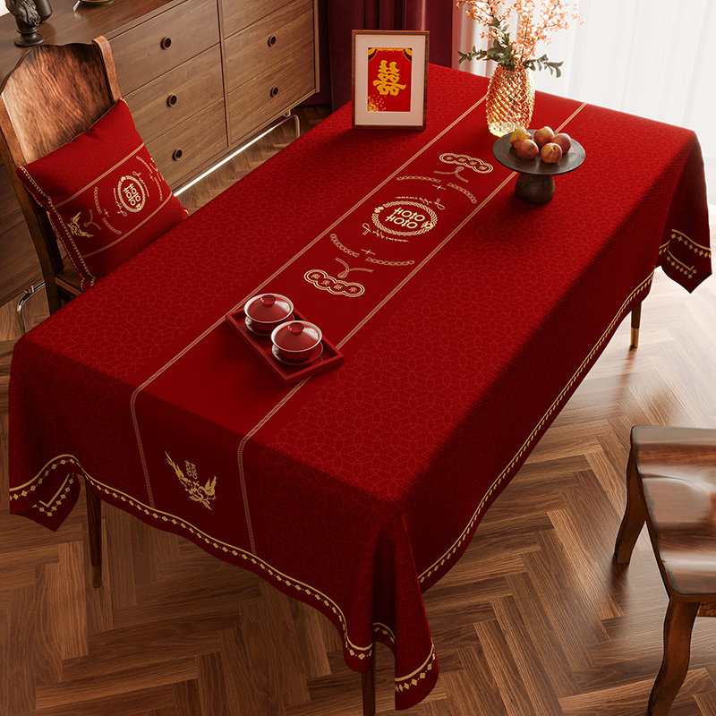 2025新款桌布结婚中式餐桌茶几盖布红色高级感餐桌布防水长方形