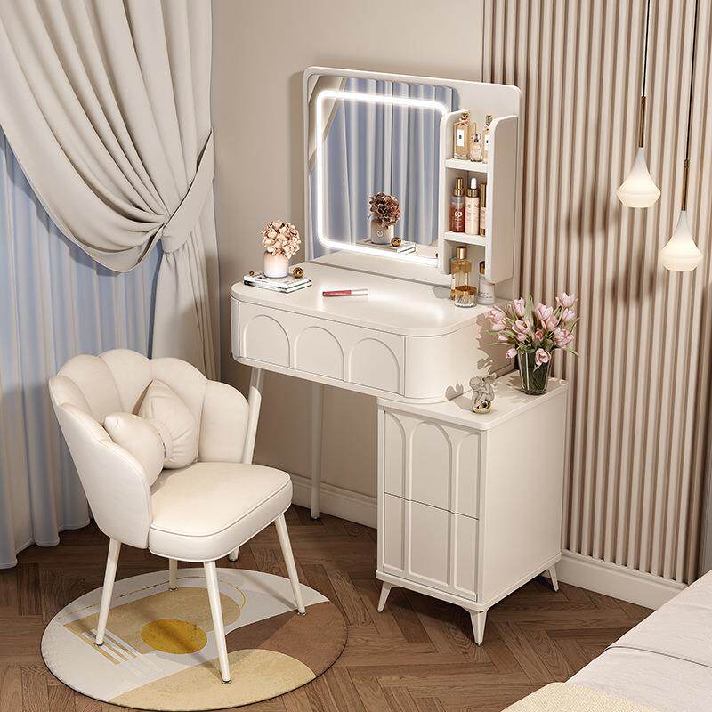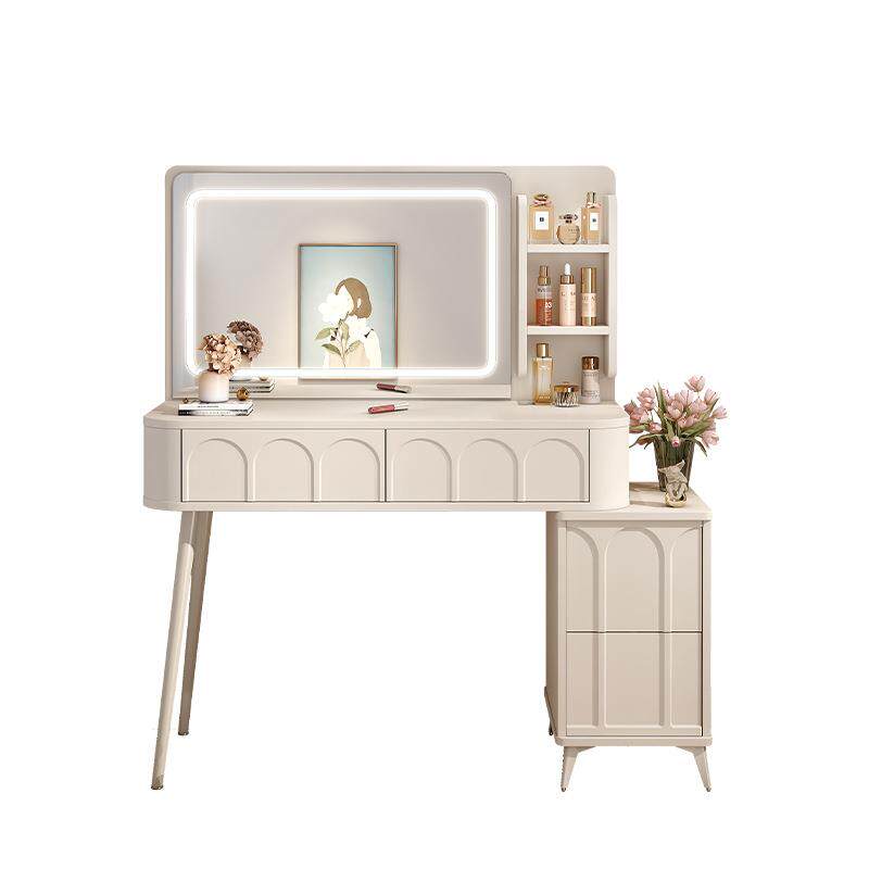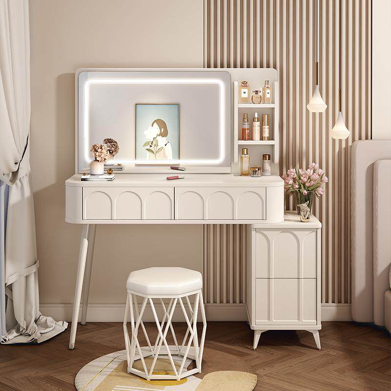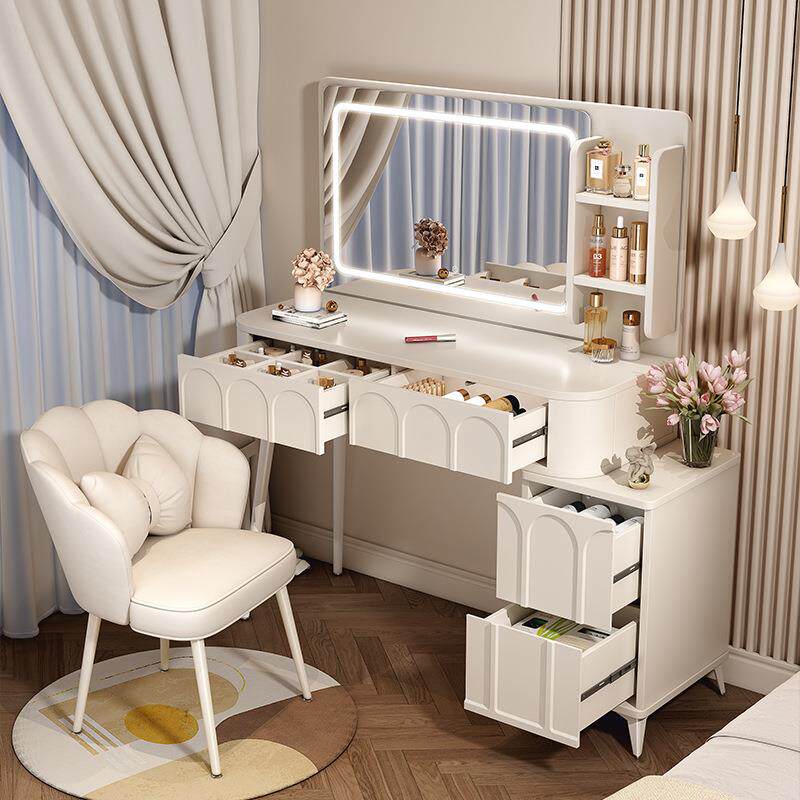 奶油风梳妆台卧室现代简约小户型化妆桌床头收纳斗柜书桌镜子一体