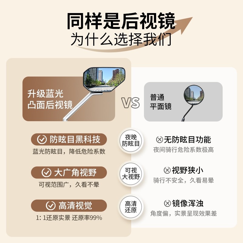 电动自行车后视镜通用电瓶车倒车镜大视野凸面镜电摩踏板车反光镜