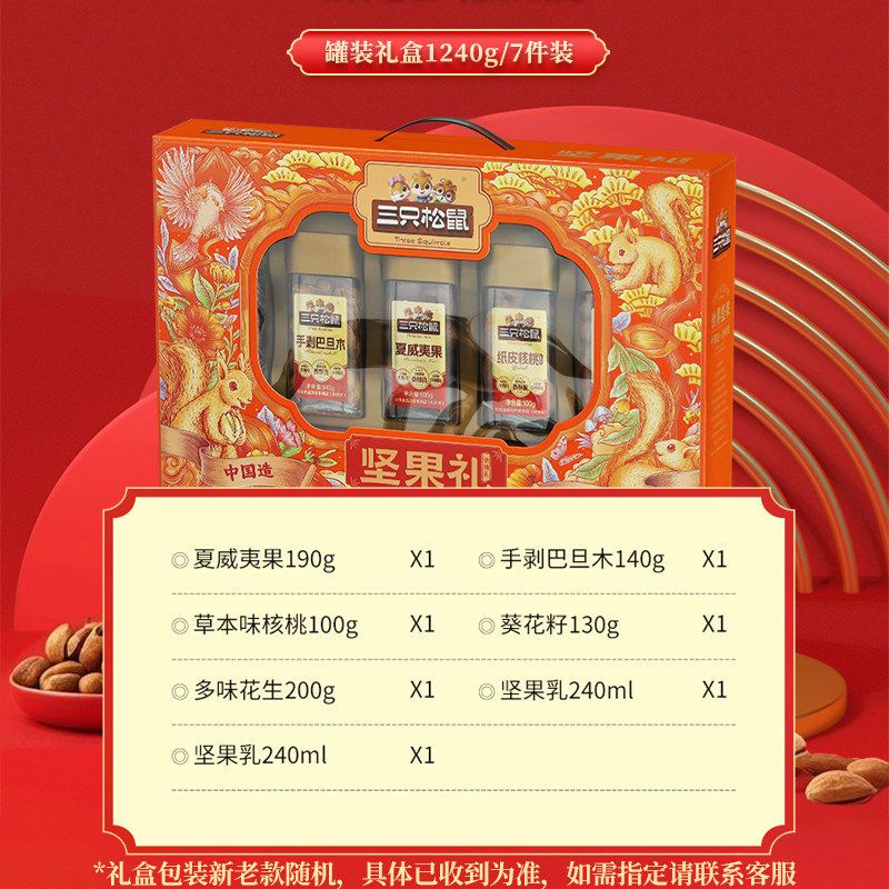 三只松鼠坚果礼盒欢锦款橙金龙腾款节日大礼包混合干果新年团购礼