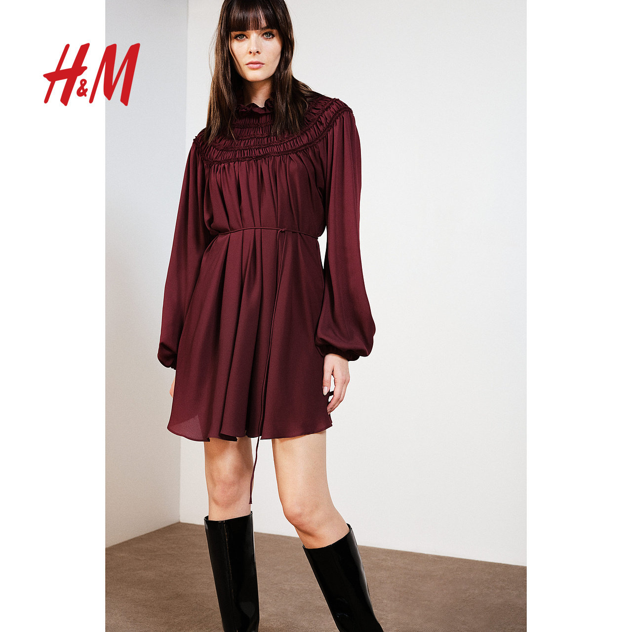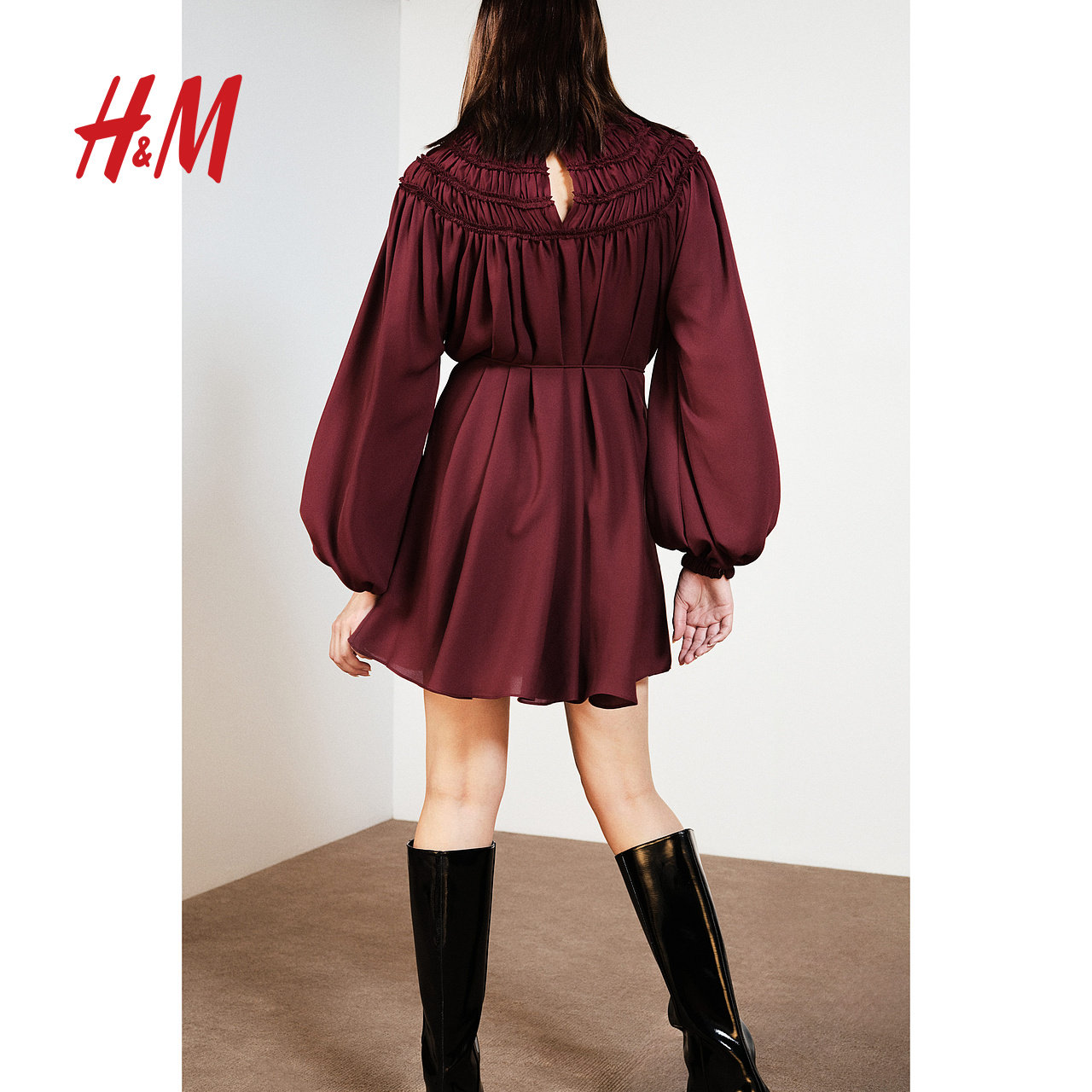 【致臻系列】HM女装红色连衣裙party小礼服法式收腰A字裙1273154