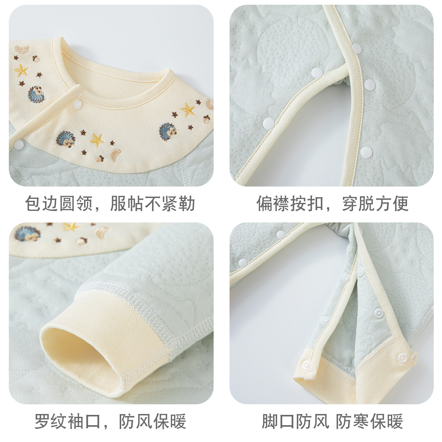 贝肽斯婴儿薄夹棉连体衣冬装外出新生幼儿宝宝衣服保暖空气棉睡衣