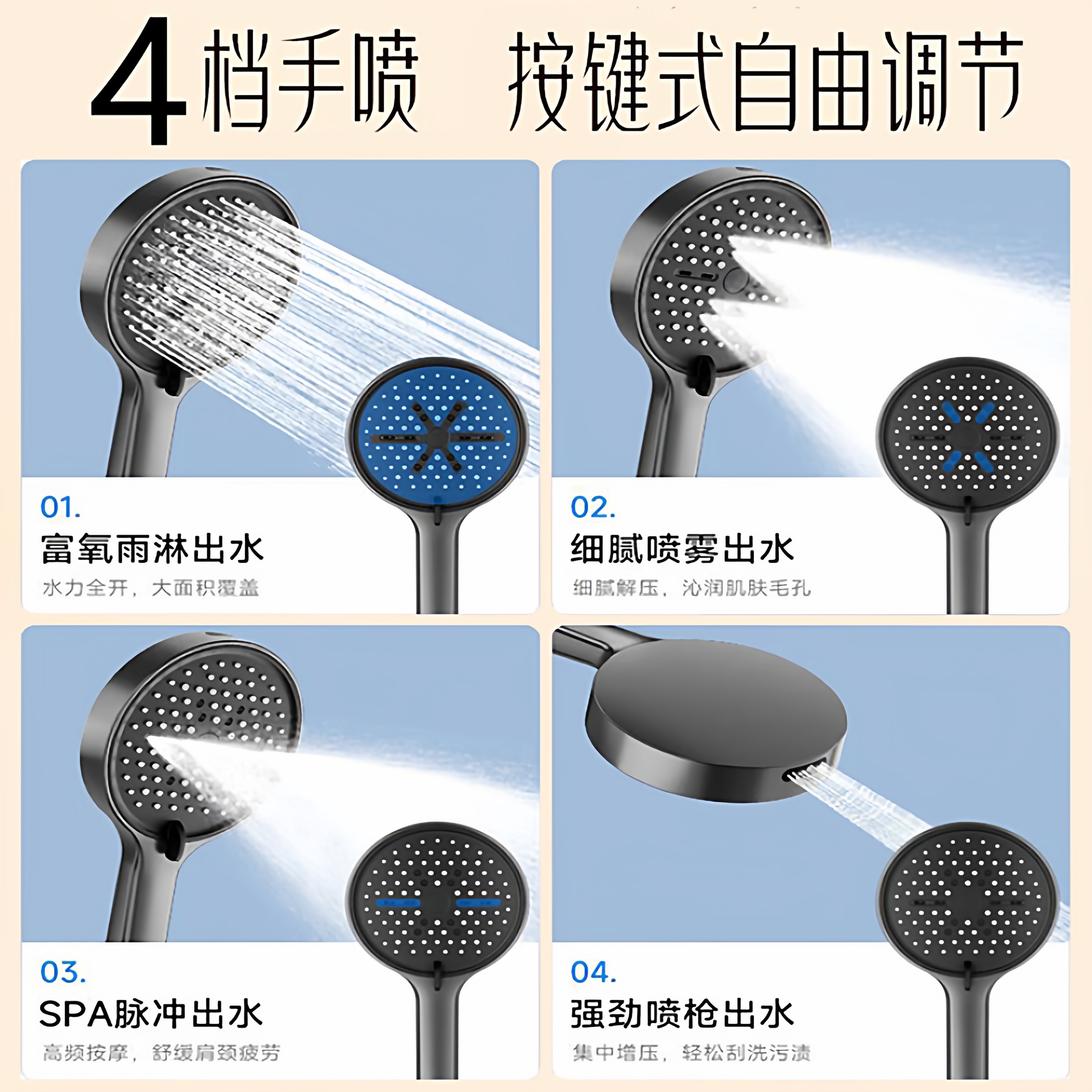 四季沐歌卫浴增压淋浴头手持花洒喷头过滤洗澡家用浴室淋蓬头套装