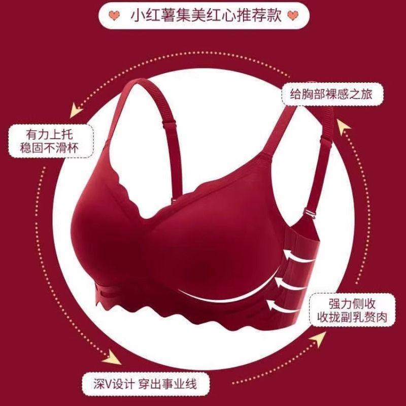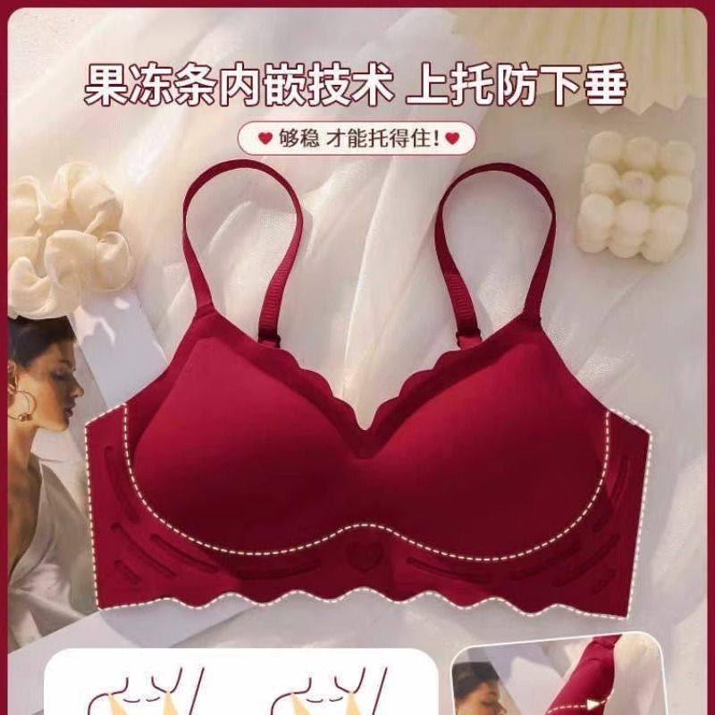 红色内衣结婚新娘小胸聚拢内裤套装无痕下垂乳文胸罩本命年防下垂