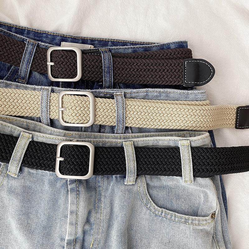 2026新款男女编织腰带针扣帆布百搭休闲皮带学生牛仔裤带松紧弹性