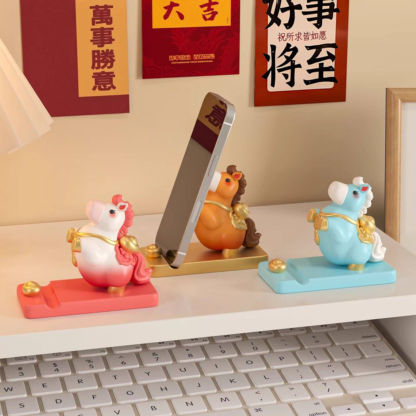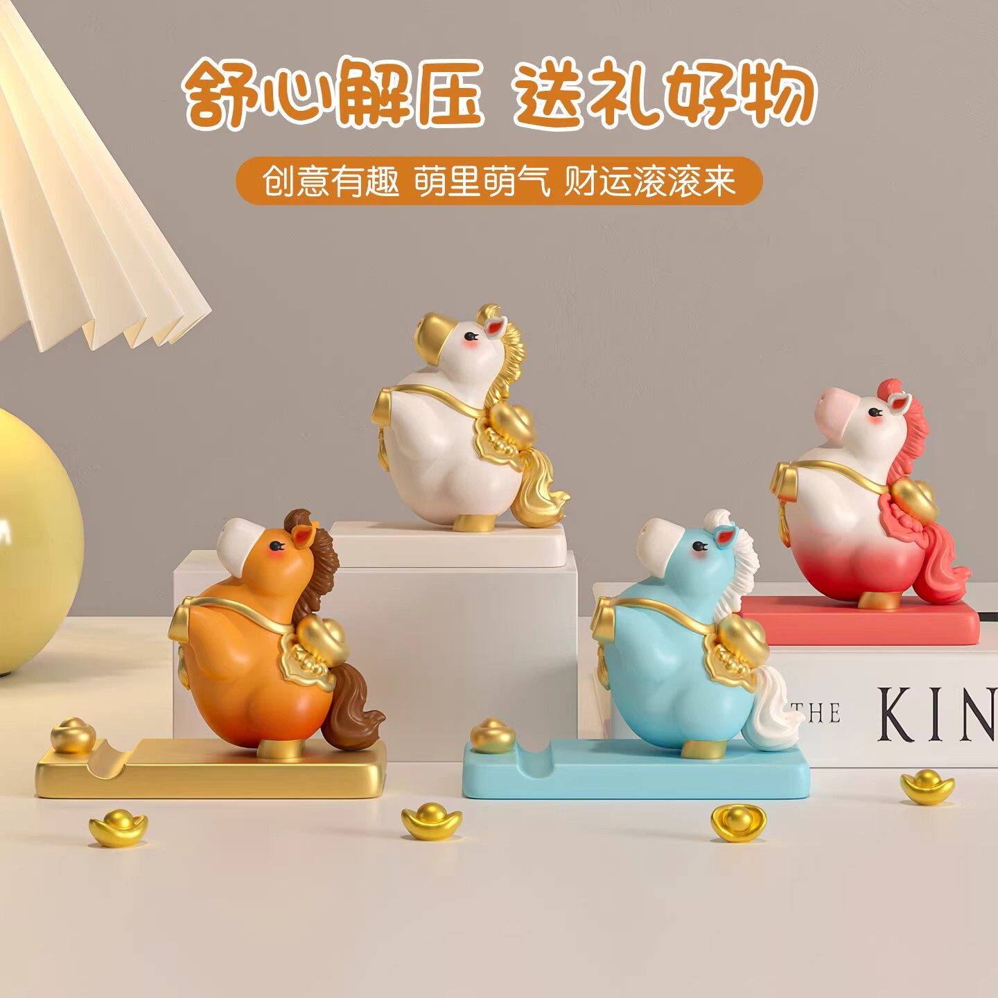 2026马年吉祥物公仔手机支架生肖小马摆件桌面装饰品马上有钱礼物