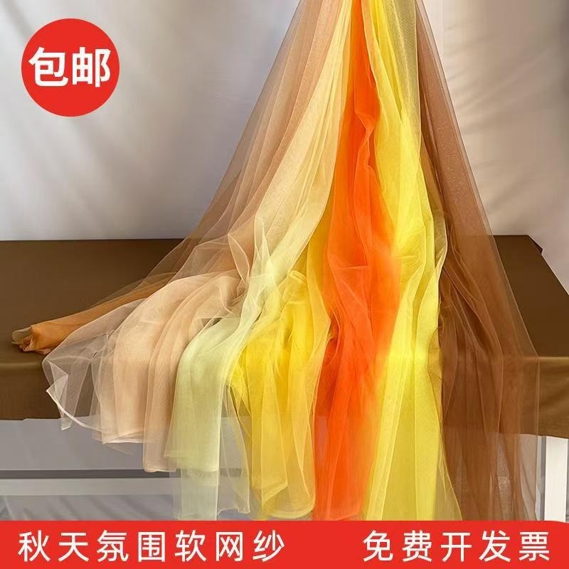雾黄色纱幔幼儿园环创网纱布料布置中式古风舞台装饰背景柔软加密