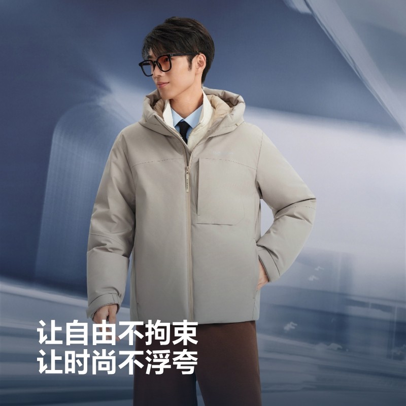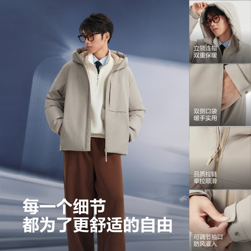 鸭鸭轻薄羽绒服男士2025年秋冬反季短款保暖休闲时尚连帽鸭绒外套