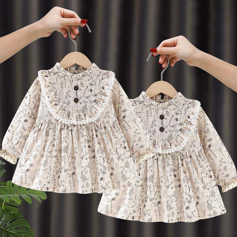 儿童罩衣外穿洋气秋冬女宝宝防脏婴儿围裙围兜反穿衣公主灯芯绒