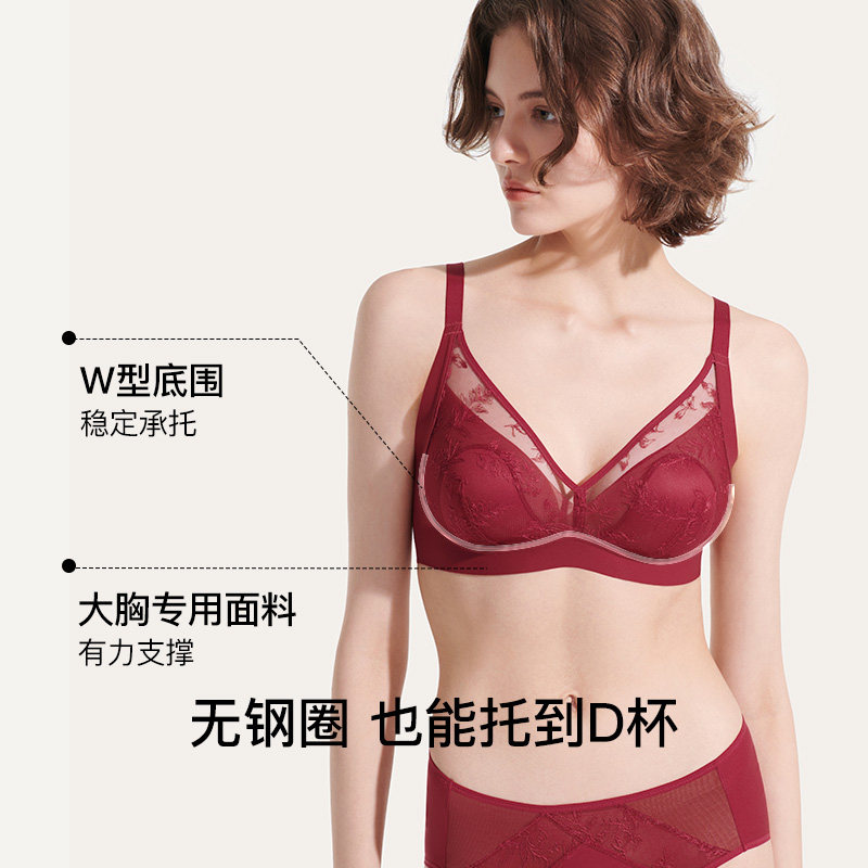 【宋轶同款风巢杯】安莉芳透气文胸大胸显小本命年红小胸聚拢内衣