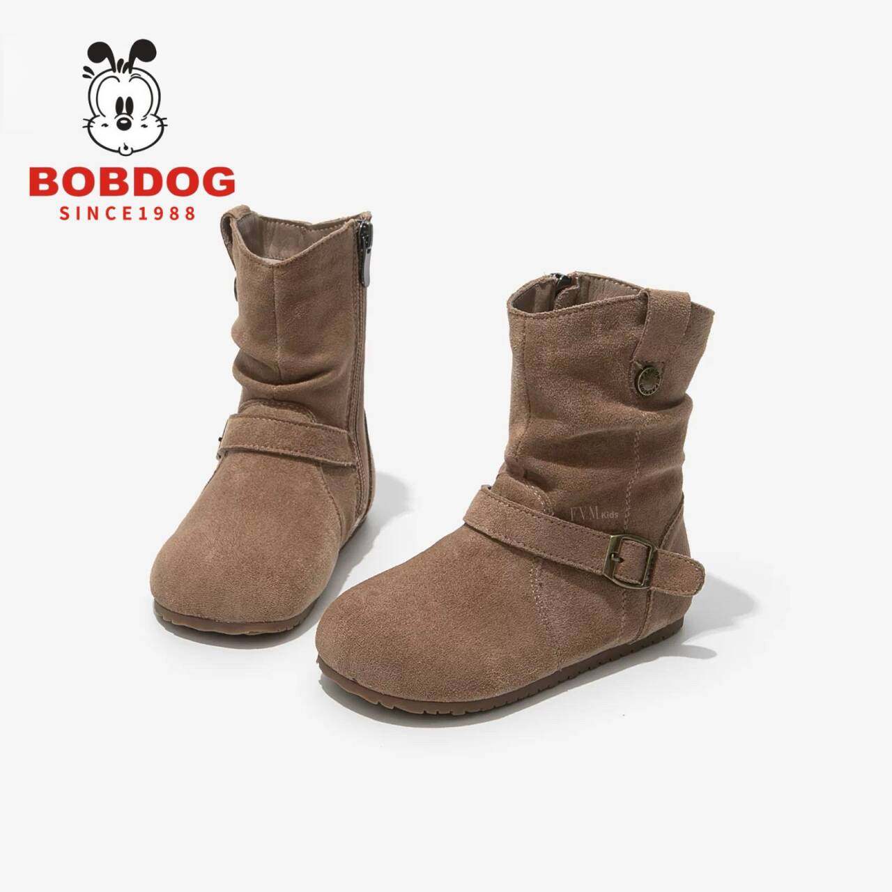 巴布豆女童靴子儿童马丁靴2025新款秋冬季宝宝中筒女孩皮靴潮鞋子