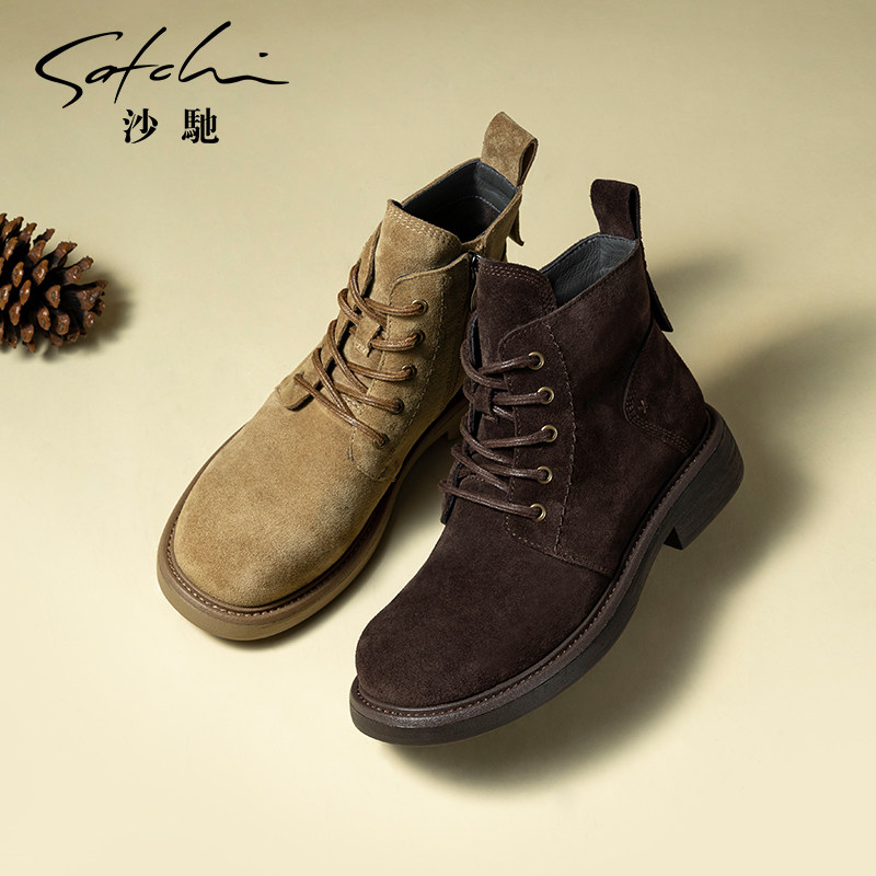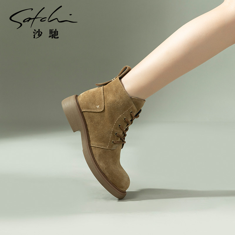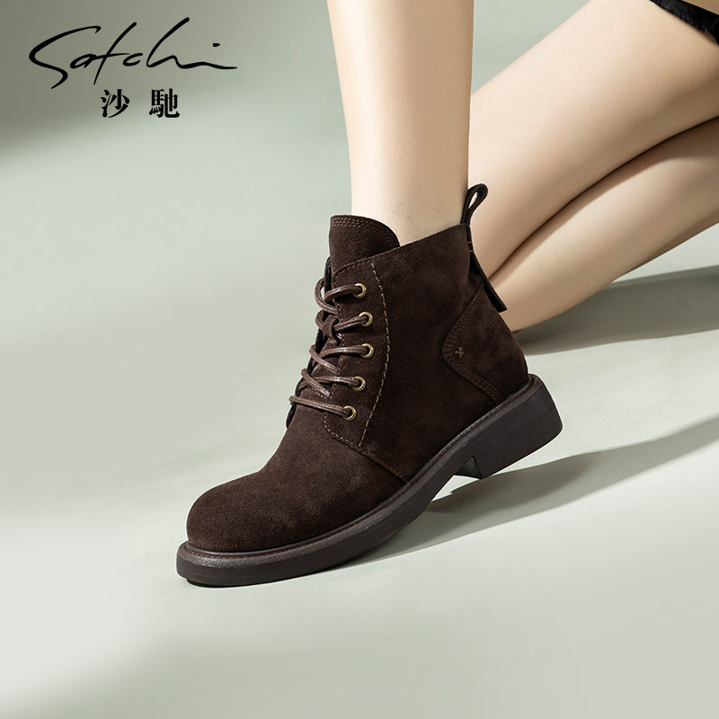 沙驰女鞋系带金典马丁靴女款2025新款英伦风短靴冬季短筒靴女靴子