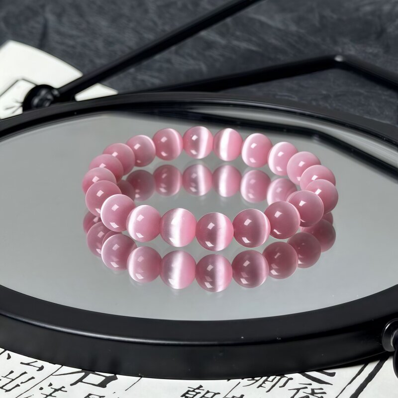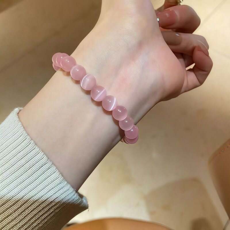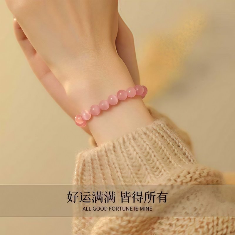轻奢猫眼石手串女生手链粉色小众水晶闺蜜送生日礼物同款配饰饰品