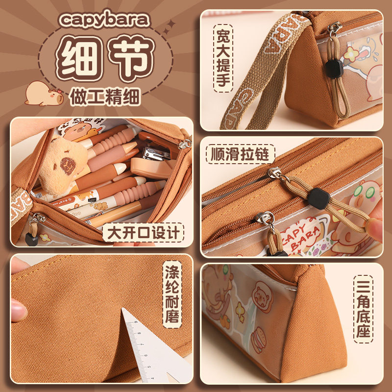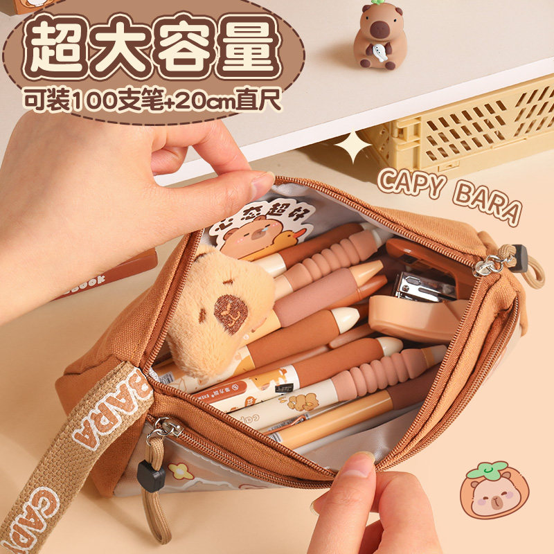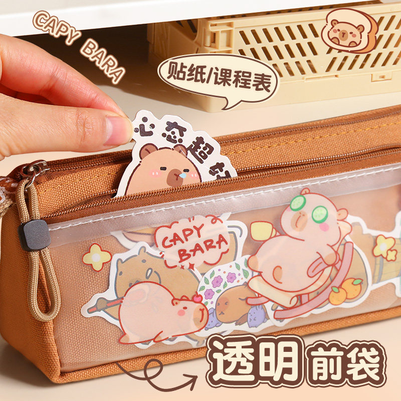 卡皮巴拉笔袋女孩小学生高颜值ins风女生2025新款文具盒女孩款男孩铅笔袋简约初中一年级大容量铅笔盒文具袋