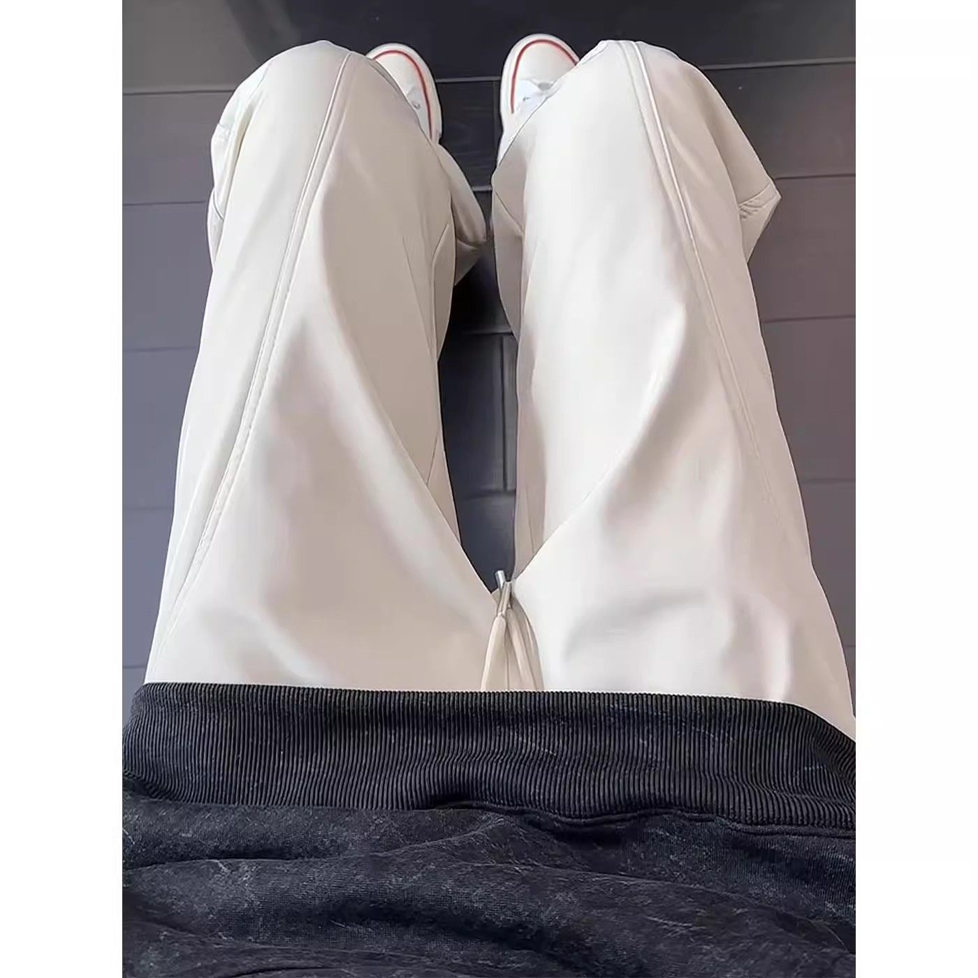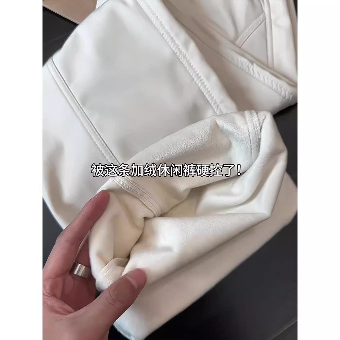 米白色软壳加绒冲锋裤男款冬季工装裤子防风防水美式休闲直筒裤