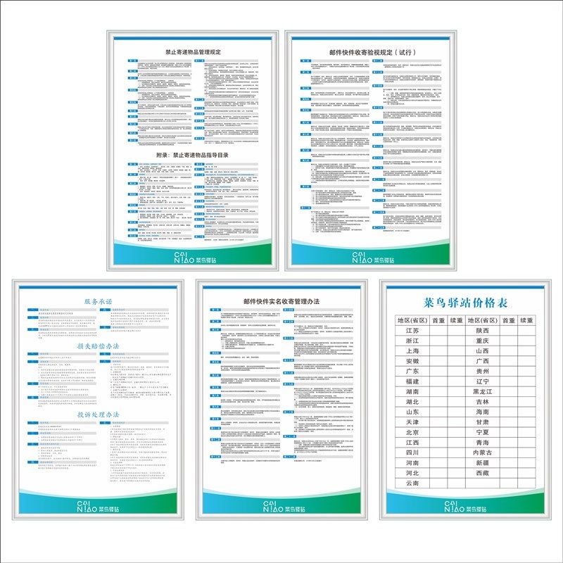 菜鸟驿站新版上墙制度牌服务承诺指导规范牌广告牌菜鸟裹裹展示牌