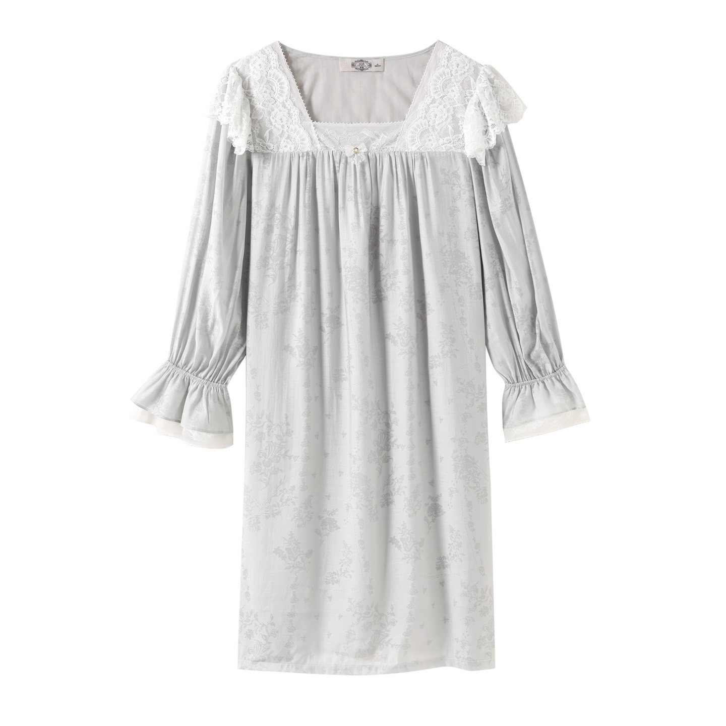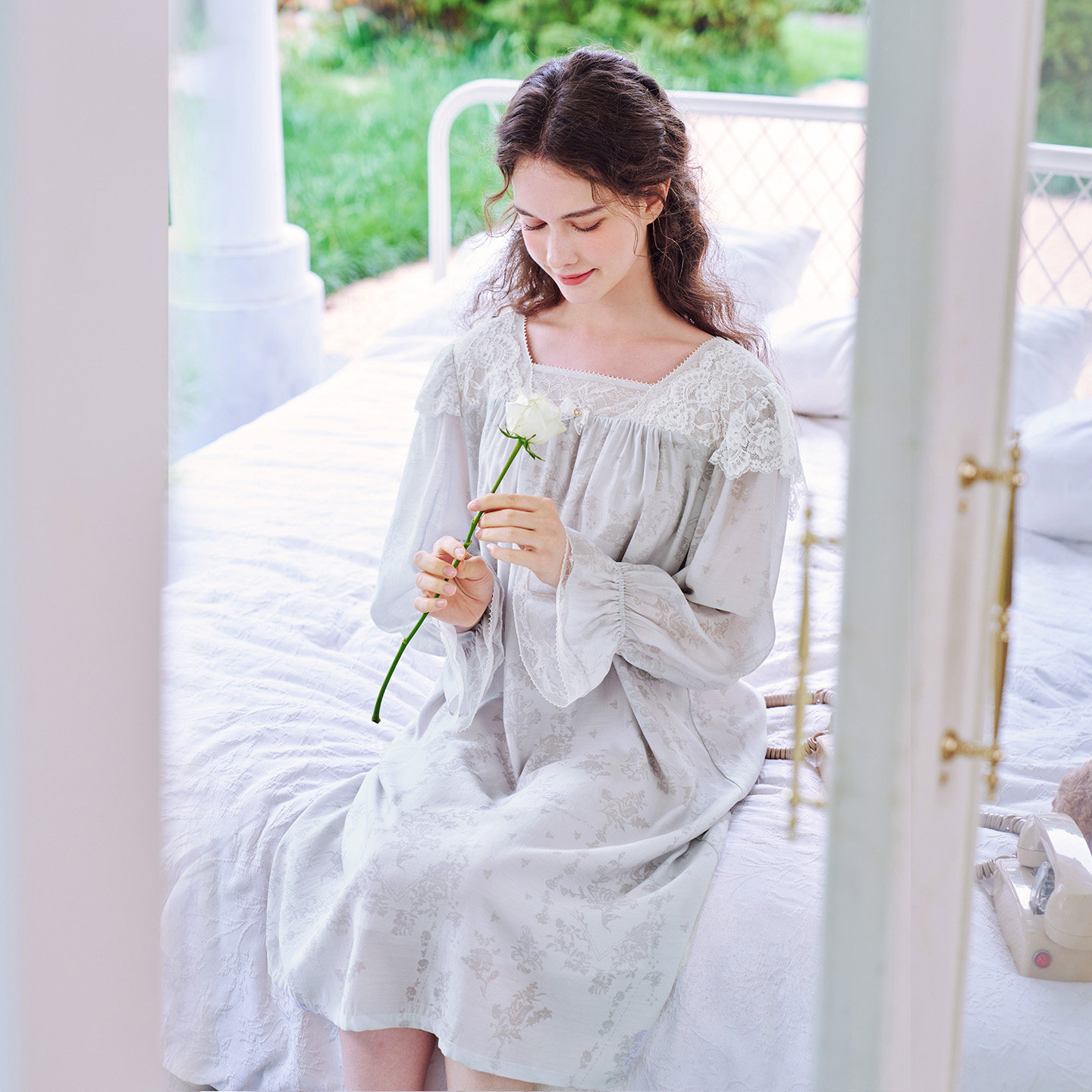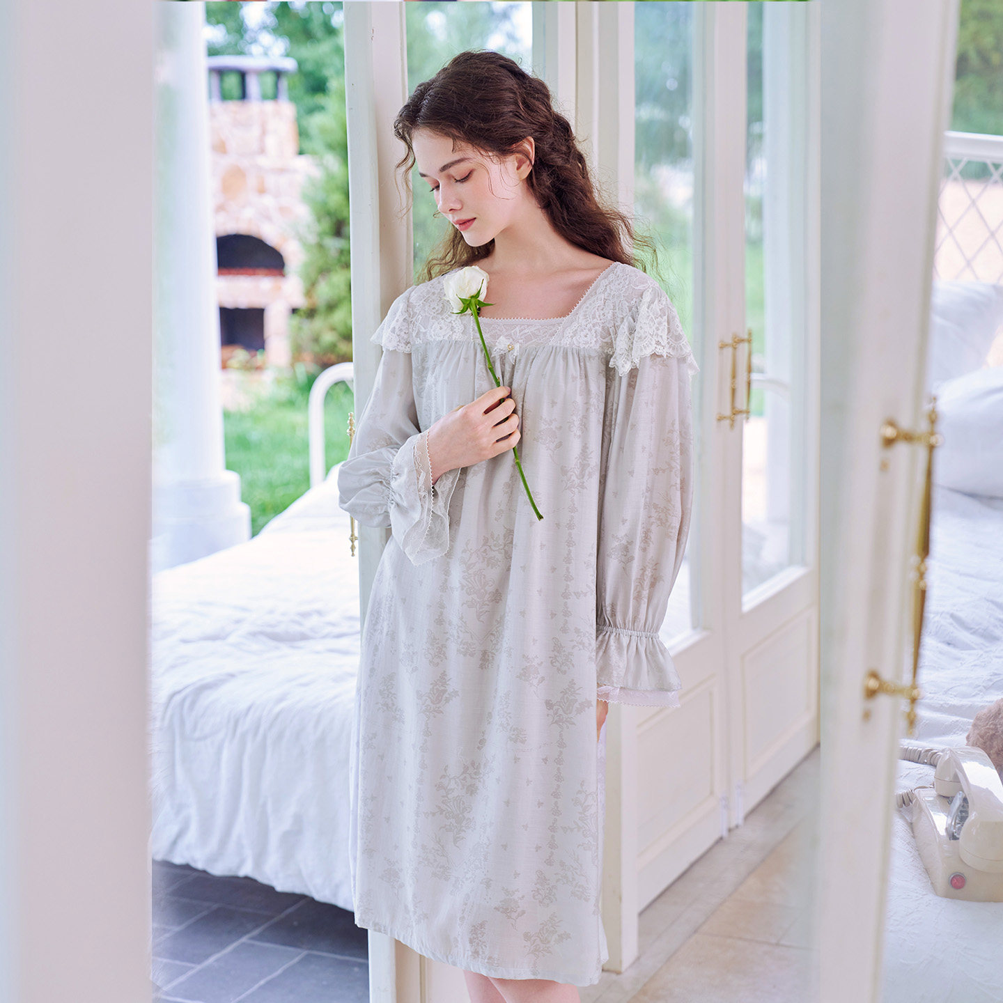 美标春秋新品长袖睡裙女里料纯棉全棉睡衣复古宫廷公主风家居服冬