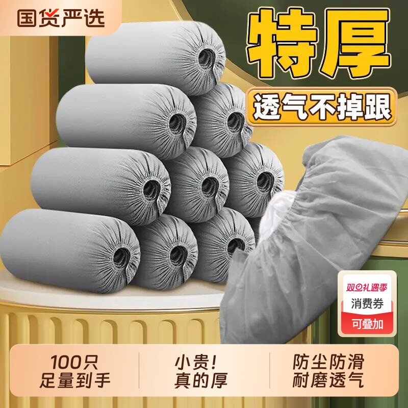 一次性无纺布鞋套加厚100只家用室内脚套家庭客人专用防尘防滑