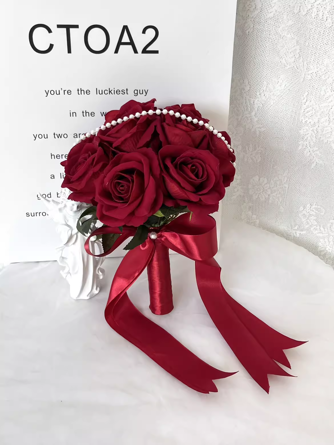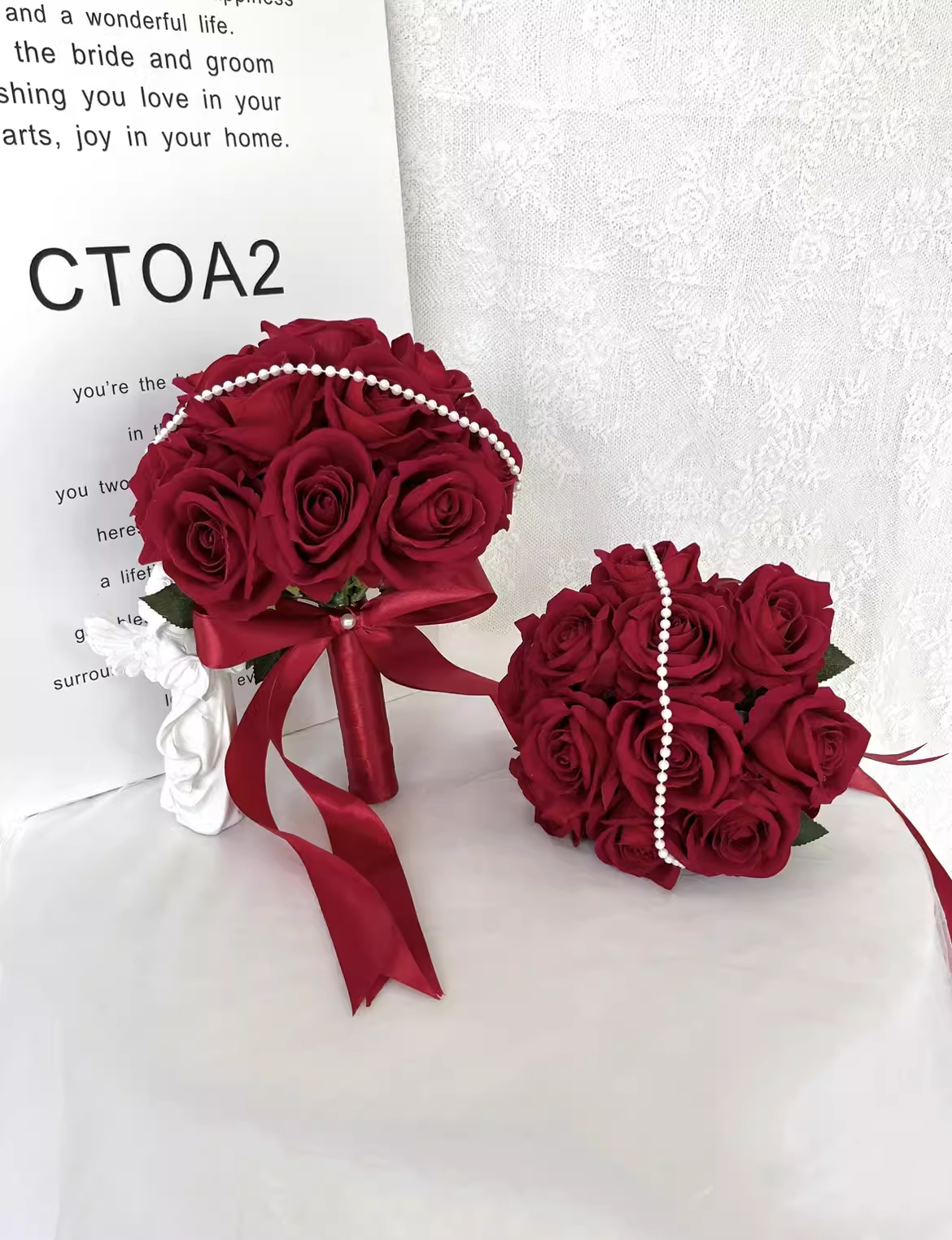 中式喜嫁领证结婚拍照道具婚纱摄影秀禾汉服新娘手捧仿真红玫瑰花