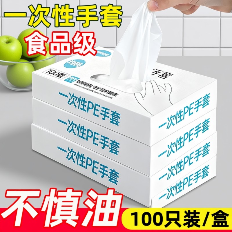 一次性手套pe食品级专用加厚耐用家用抽取式透明吃小龙虾餐饮盒装