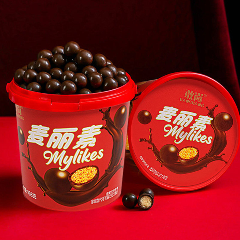 怡浓麦丽素桶装520g怀旧黑巧克力豆夹心朱古力脆心球麦芽儿童零食