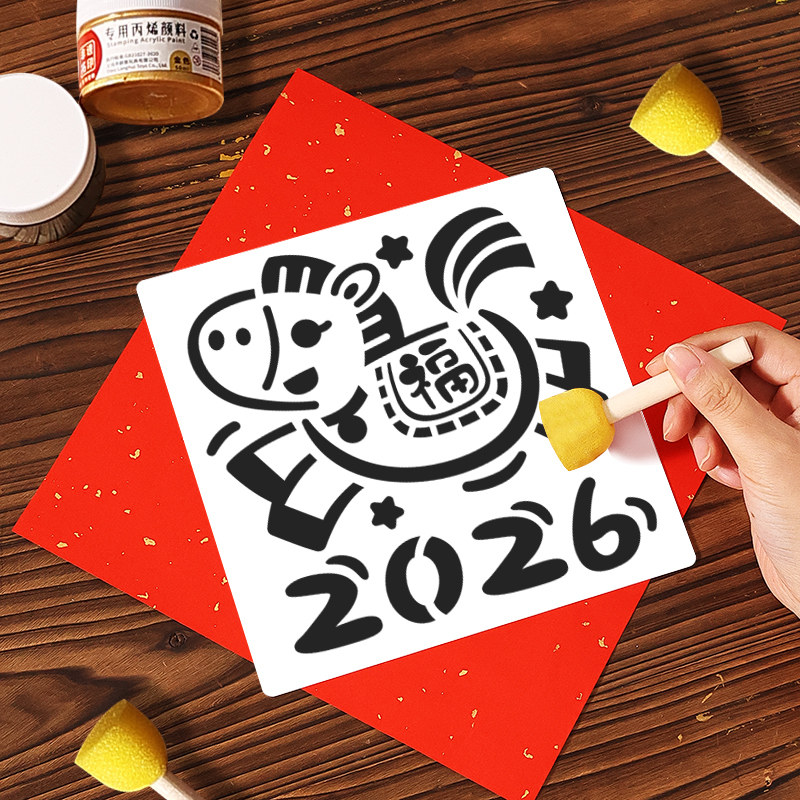 新年拓印画儿童diy手工镂空画福字贴幼儿园印刷画涂鸦画新春马年