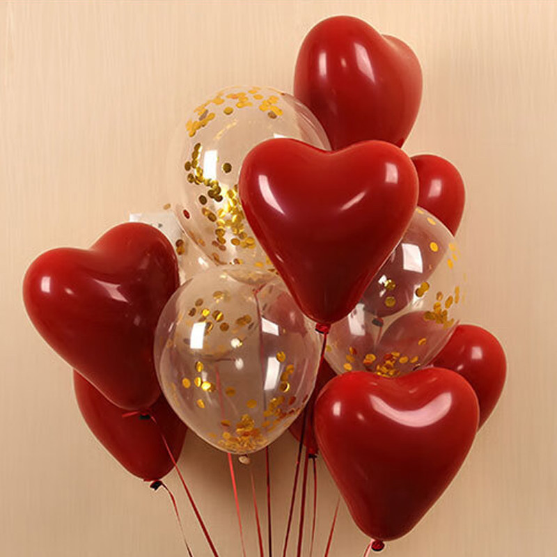 浪漫婚房布置双层心形气球派对生日装饰石榴红气球婚庆装饰气球