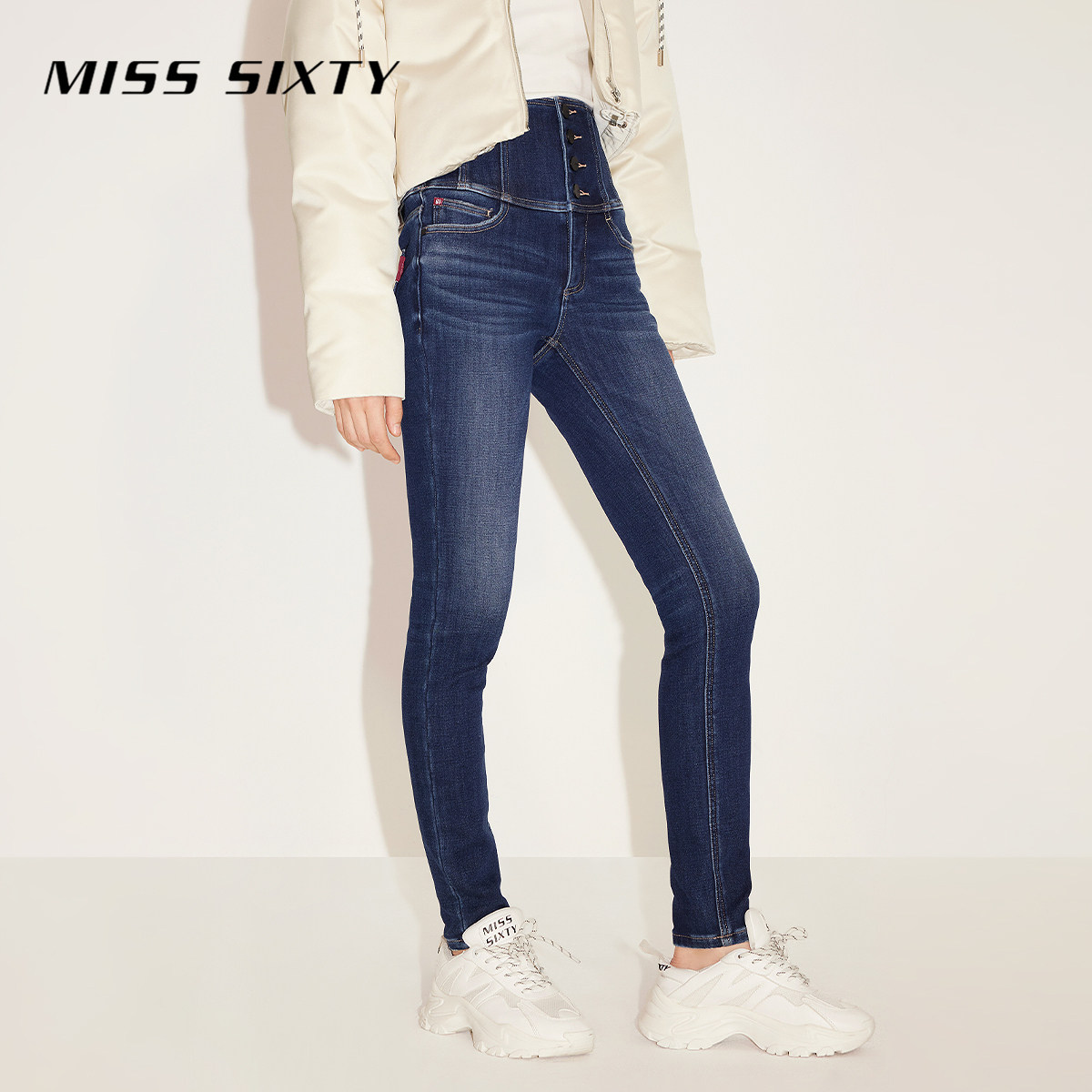 【保暖复合绒】Miss Sixty牛仔裤四扣高腰厚款百搭休闲小脚铅笔裤