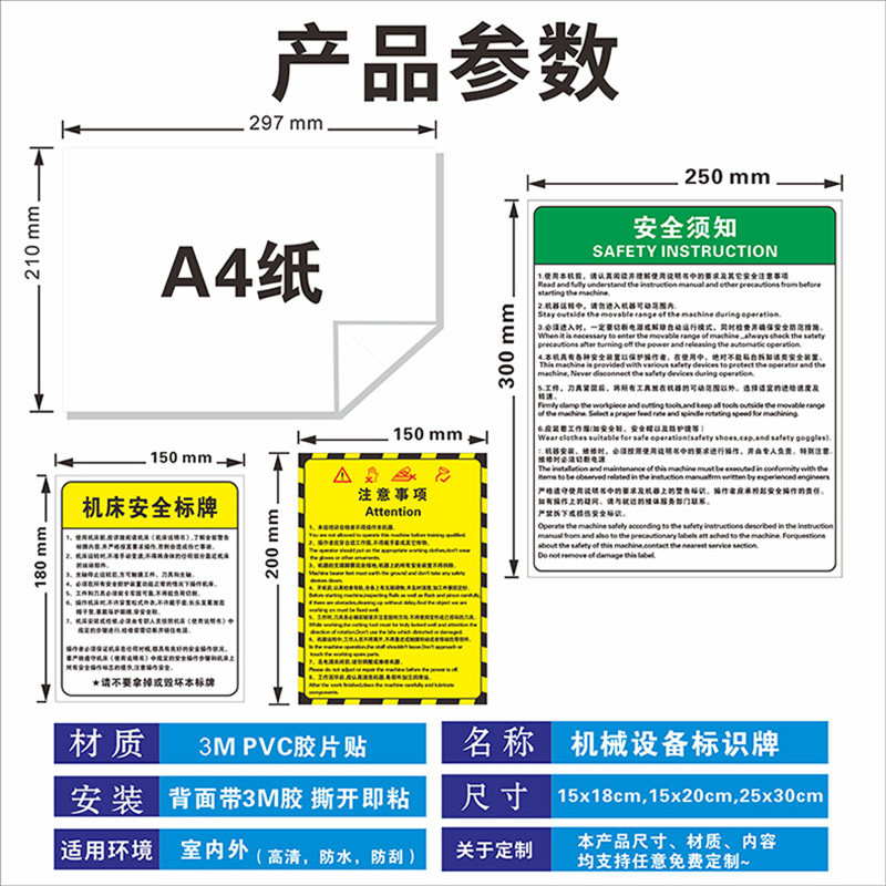 数控机床定期保养检查标识标牌机械设备数控加工注意事项空压机车床安全操作规程使用说明警示告贴纸自粘定制