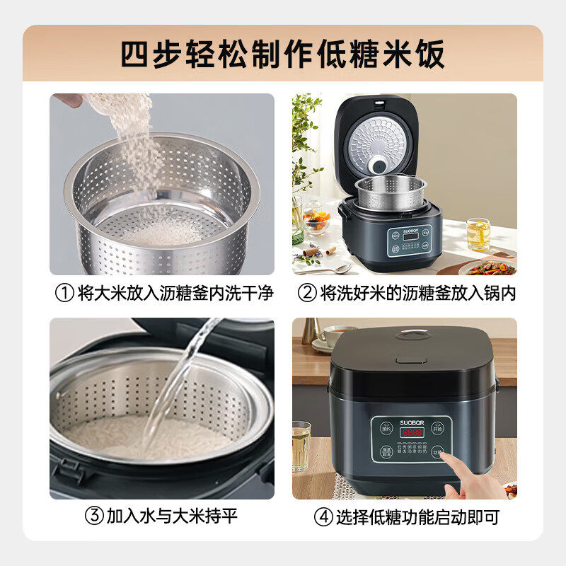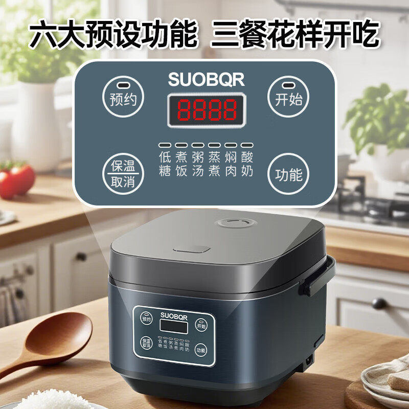 苏泊家用低糖2-3L电饭煲304不锈钢小型3-5人迷你电饭锅智能预约
