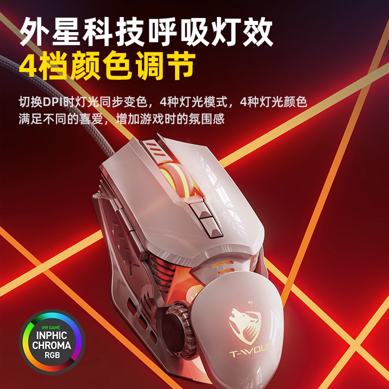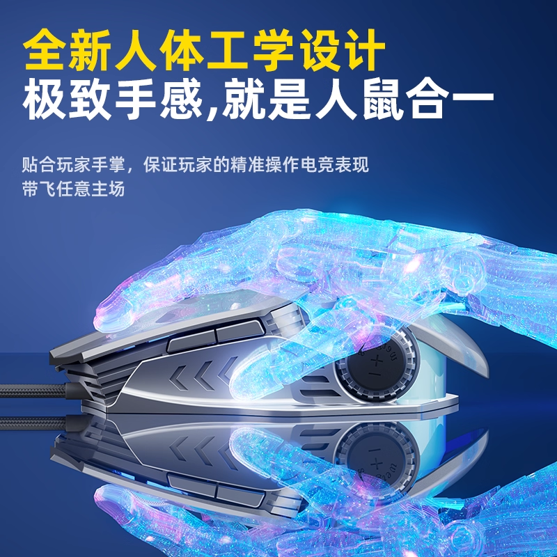 英菲克PW1有线鼠标静音游戏电竞机械宏办公usb台式笔记本电脑专用
