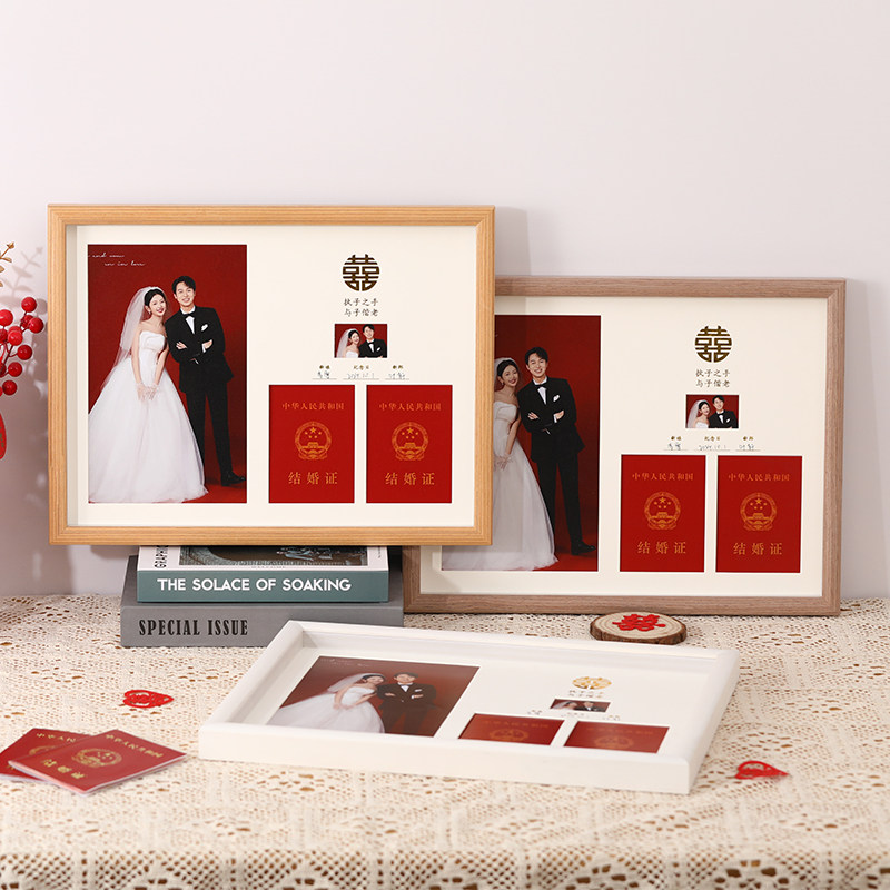 实木结婚证相框创意摆台洗证件照片情侣领证周年纪念日婚纱照挂墙