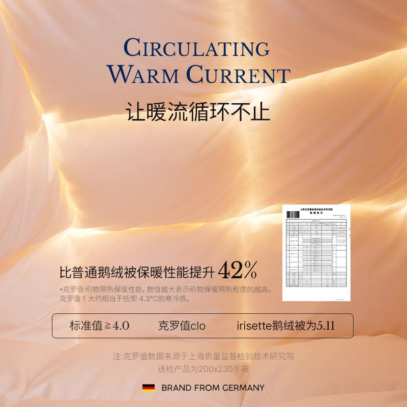 irisette德国95白鹅绒蚕丝复合被双感羽绒被冬被加厚被芯春秋被子
